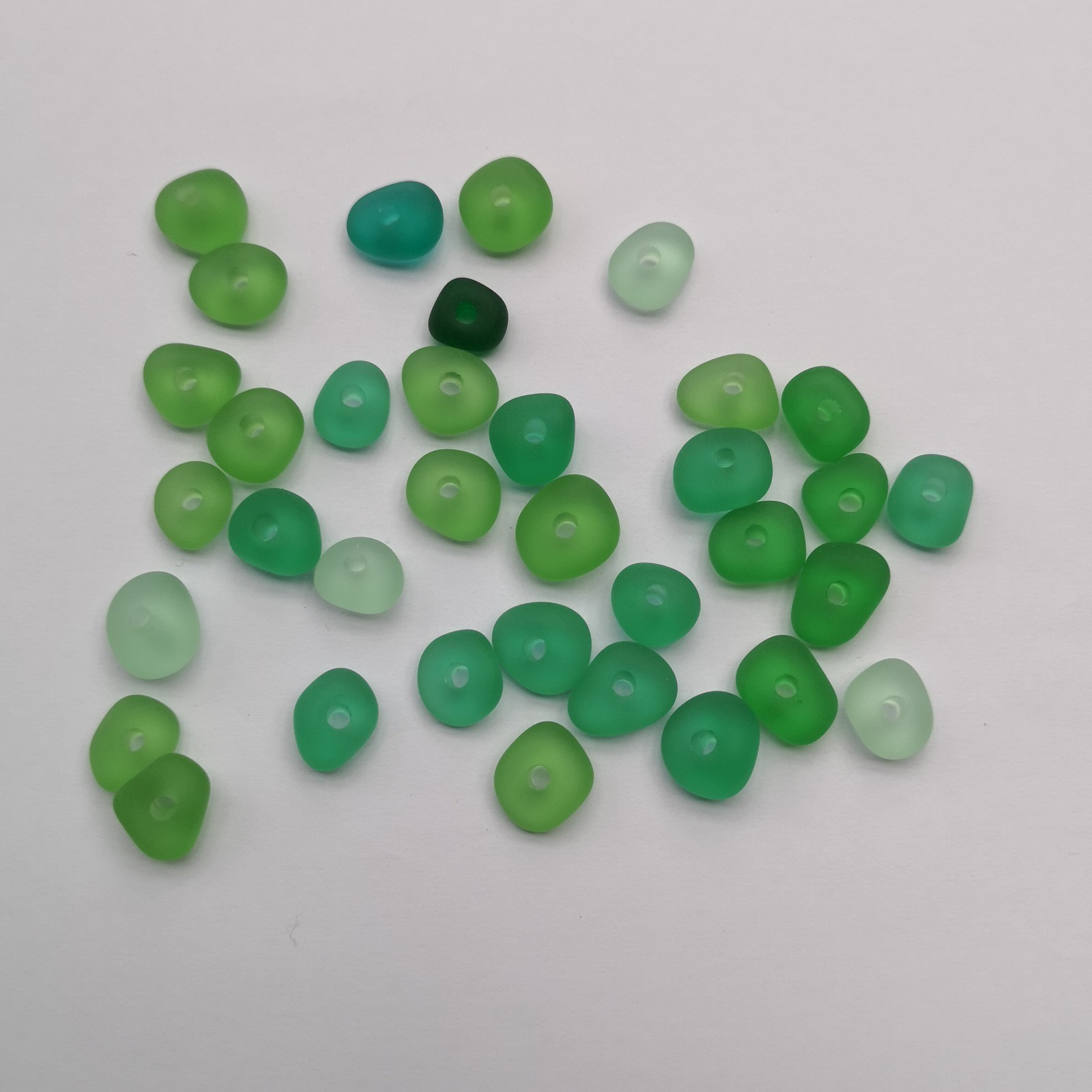 10 pcs green 3mm big holes center drilled sea beach glass jewelry making