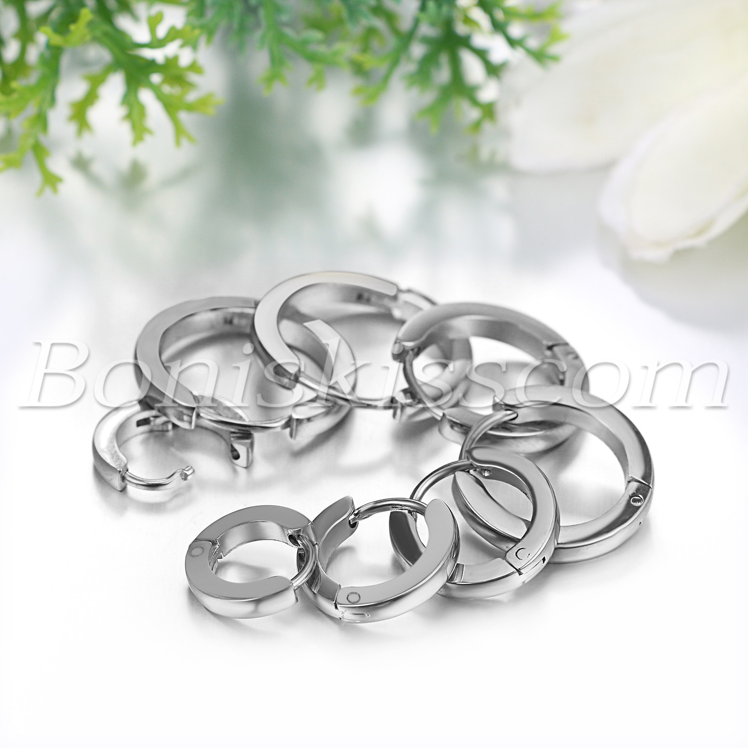 как выглядит 8pcs 7mm-14mm Men Women Polish Stainless Steel Round Huggie Hinged Hoop Earrings фото