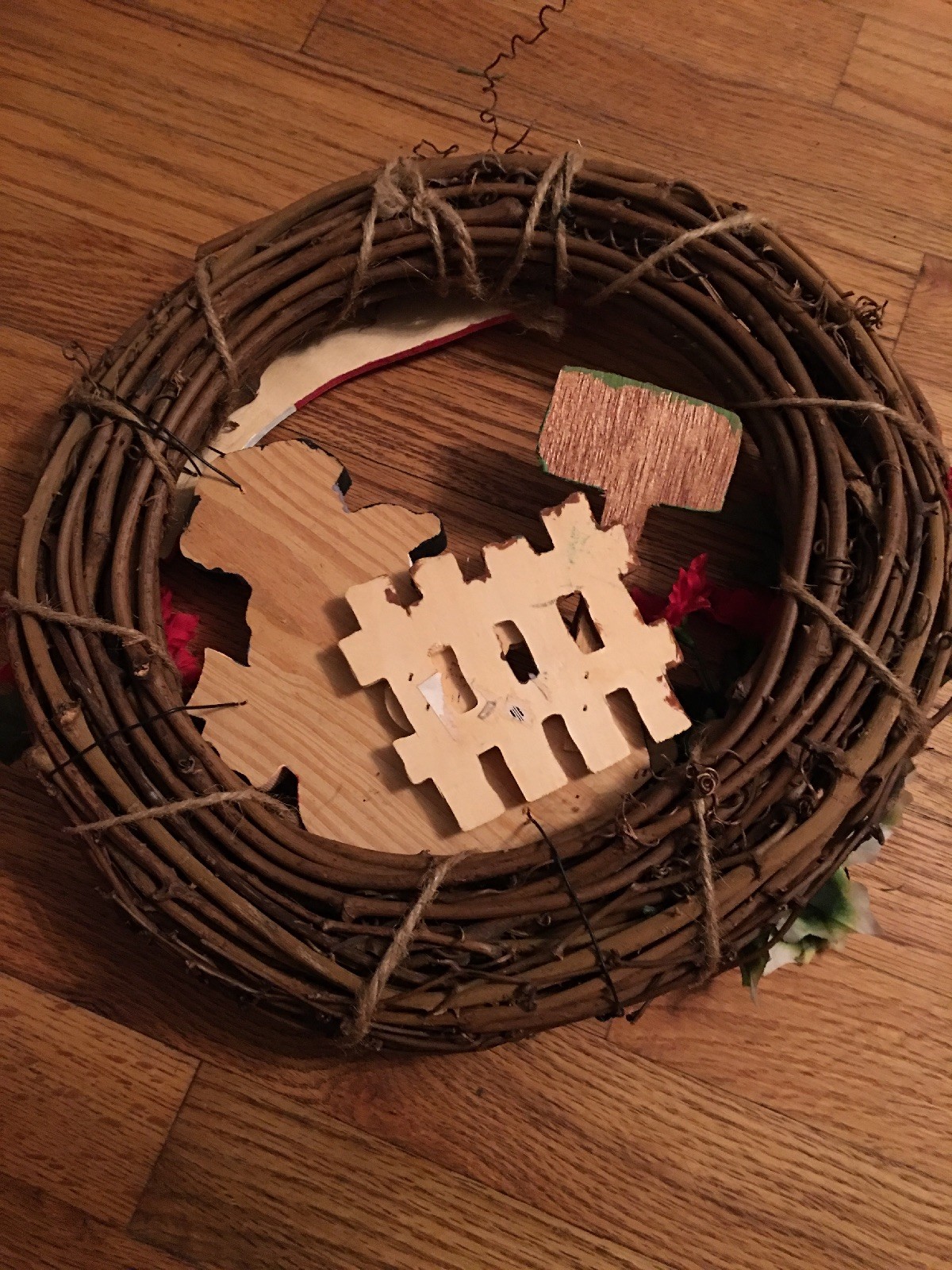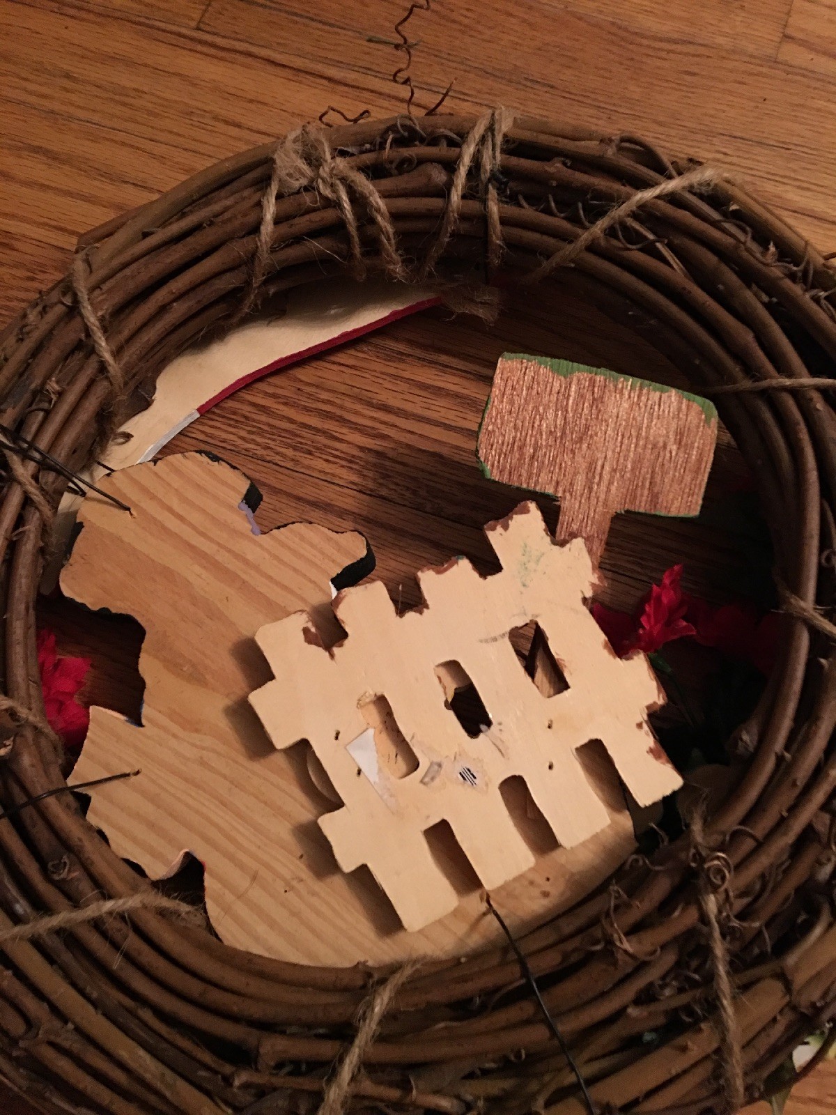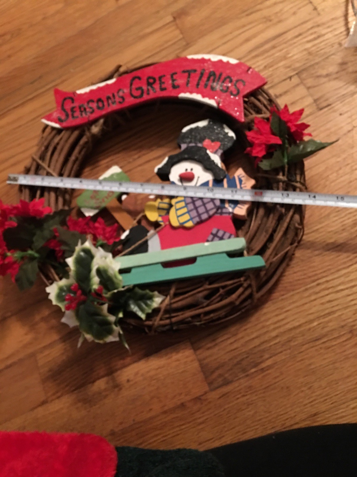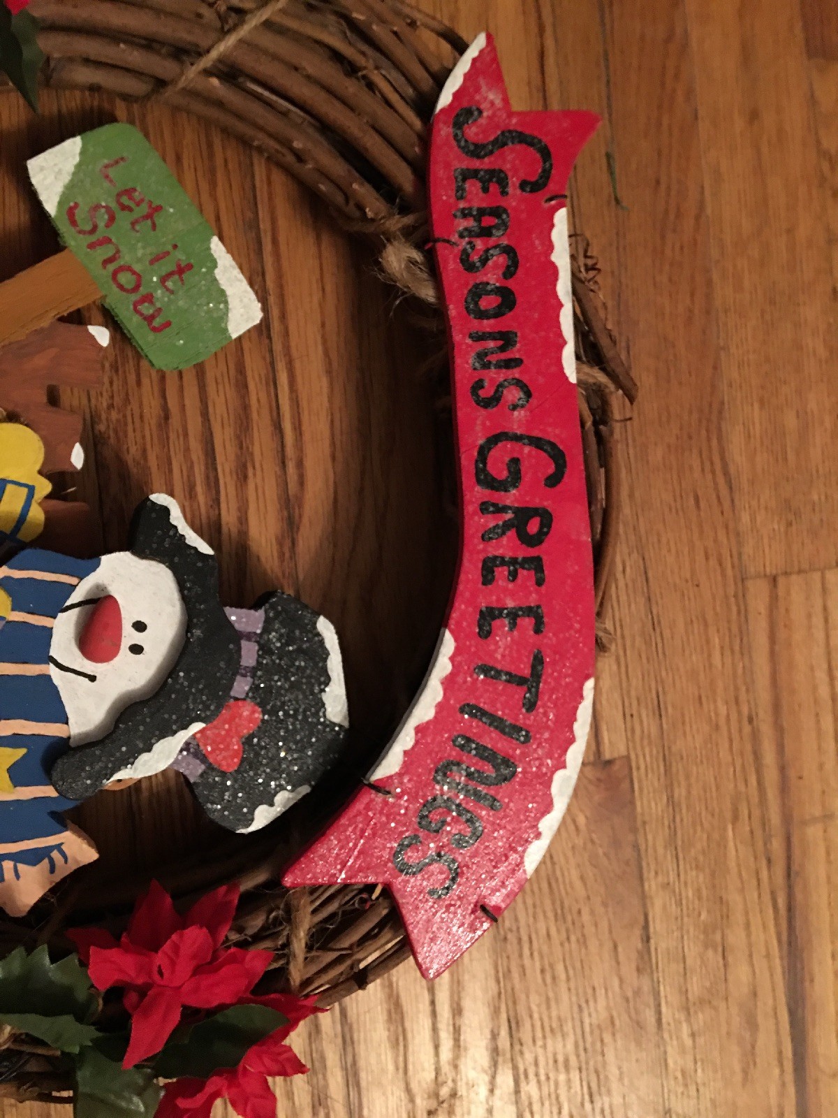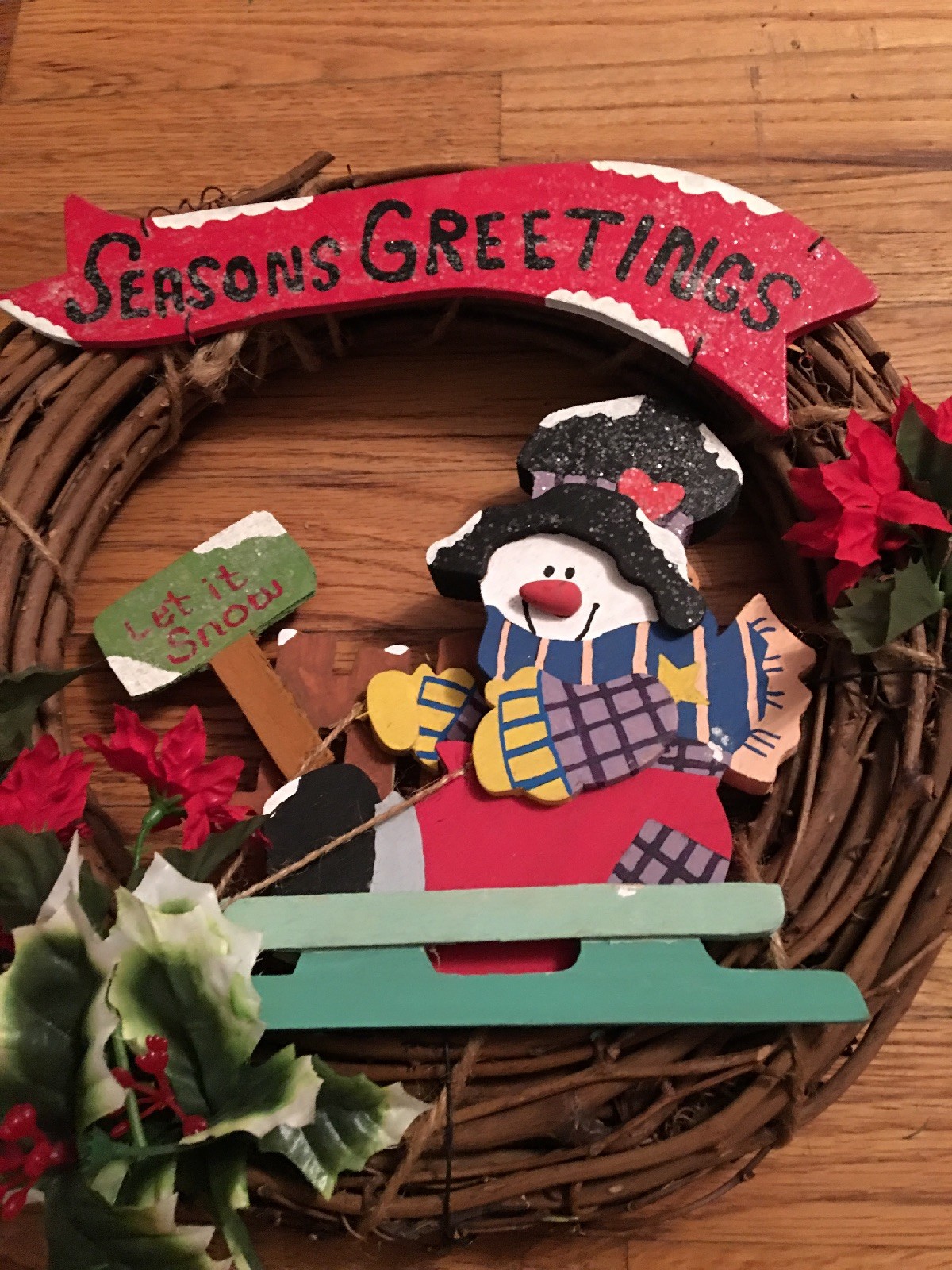 Handmade Seasons Greetings Let It Snow Christmas Snowman Frosty Wreath Door Wood