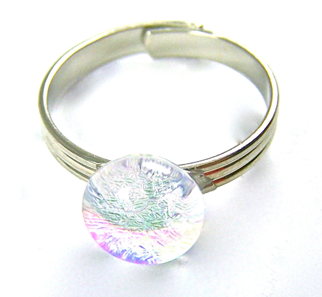 Ring Adjustable Dichroic Glass Tiny 1/4 Clear Chartreuse LIME Yellow Metallic