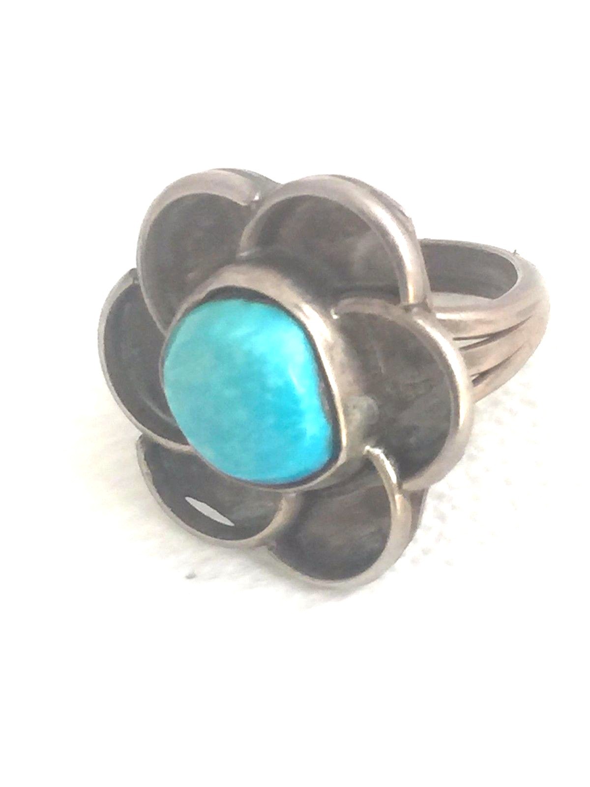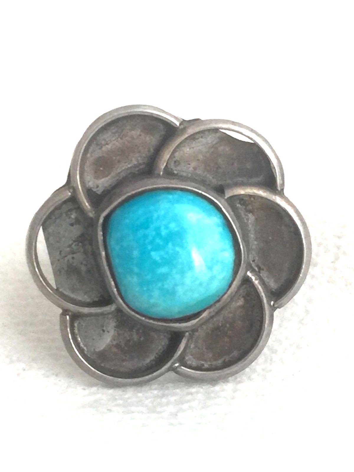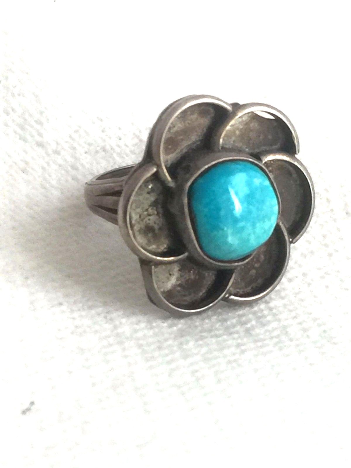 Vintage Sterling Silver Southwest Tribal Turquoise Flower Ring Size 6 6.3g