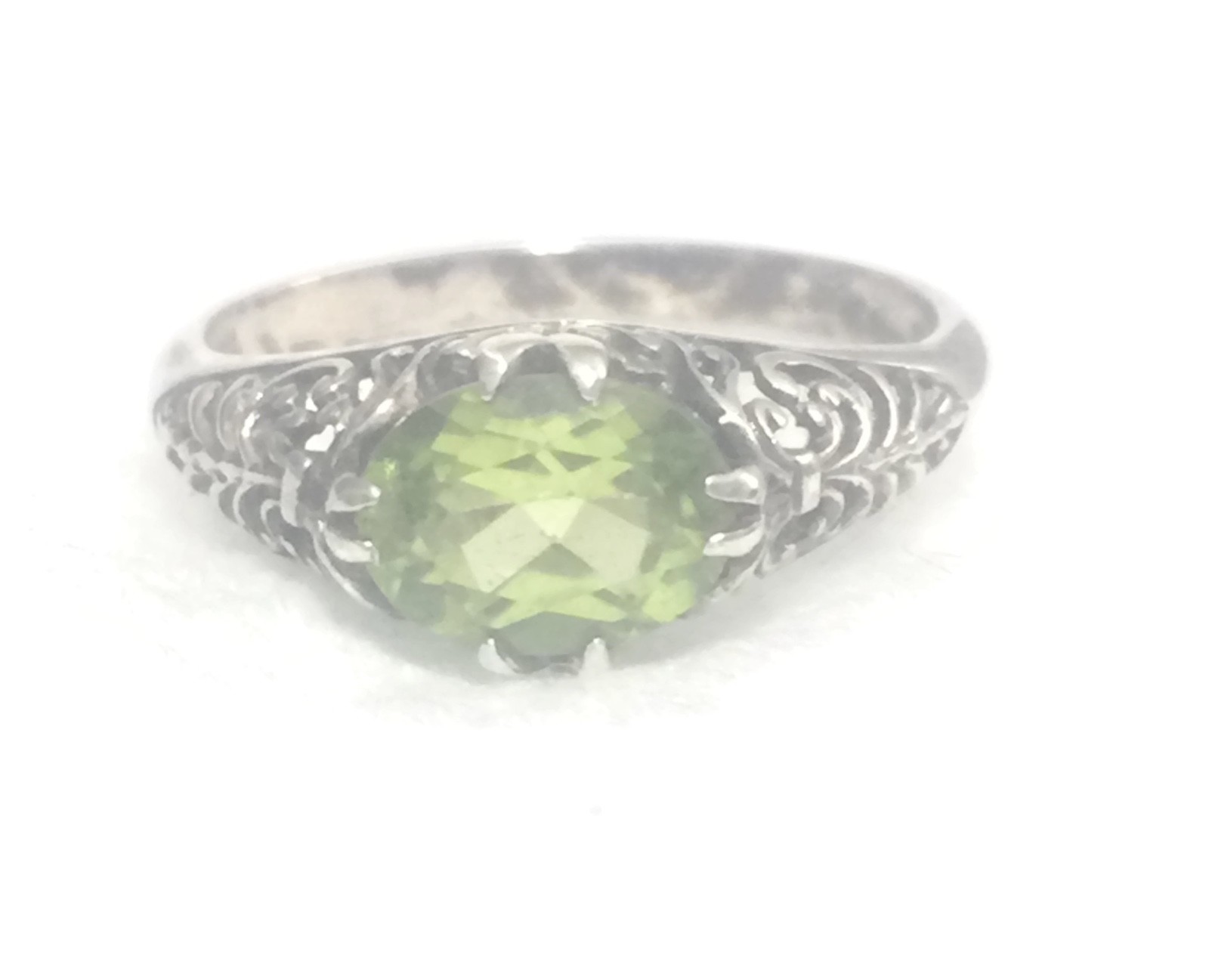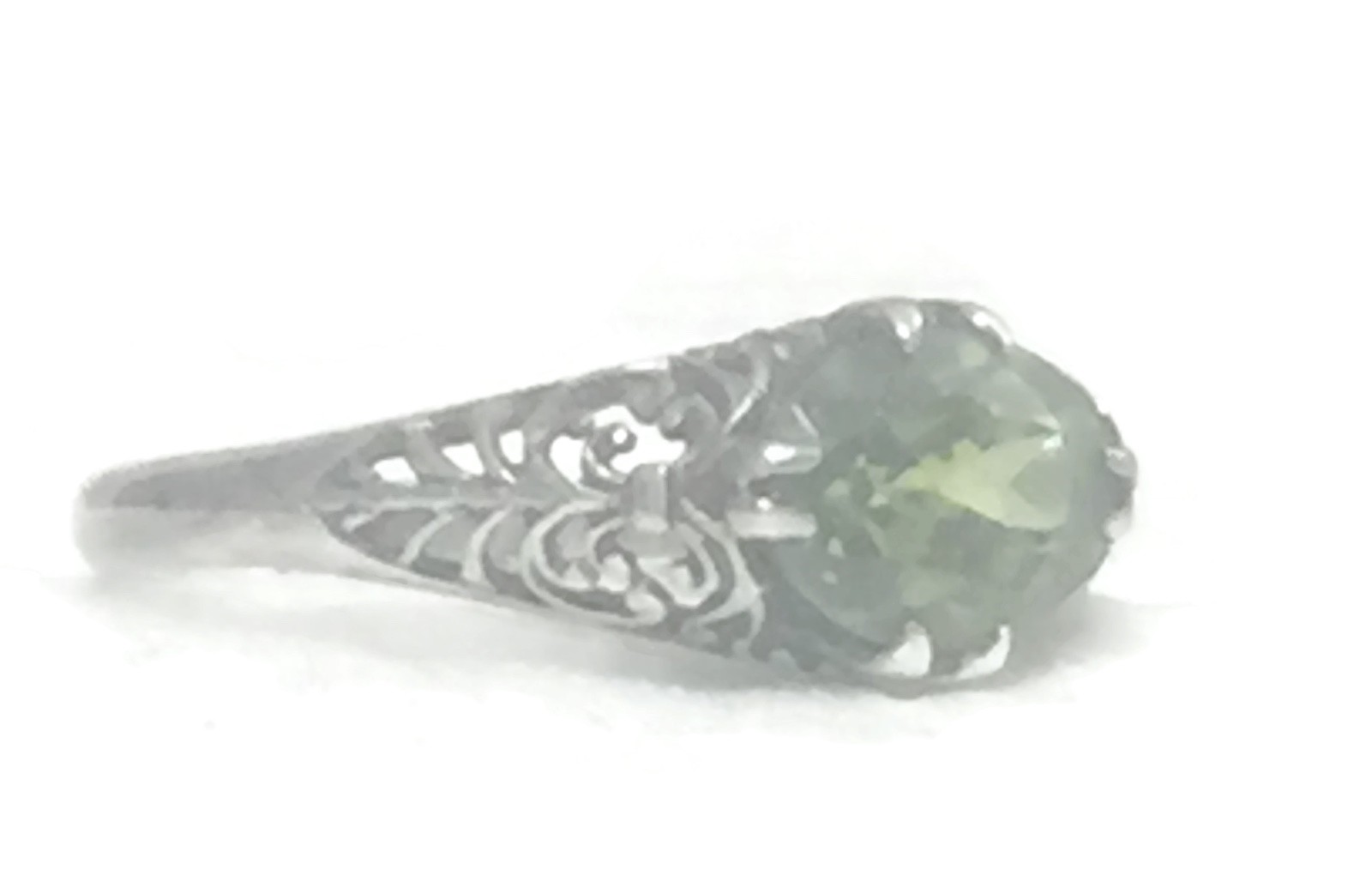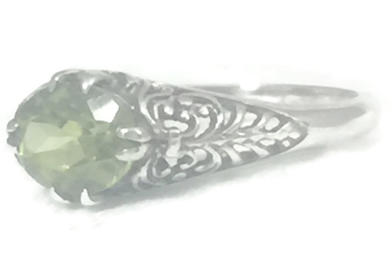Vintage Green Solitaire Filigree Floral Sterling Silver Boho Ring Size 6.50