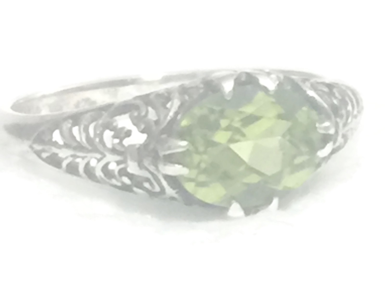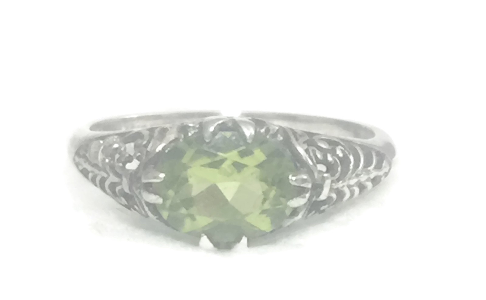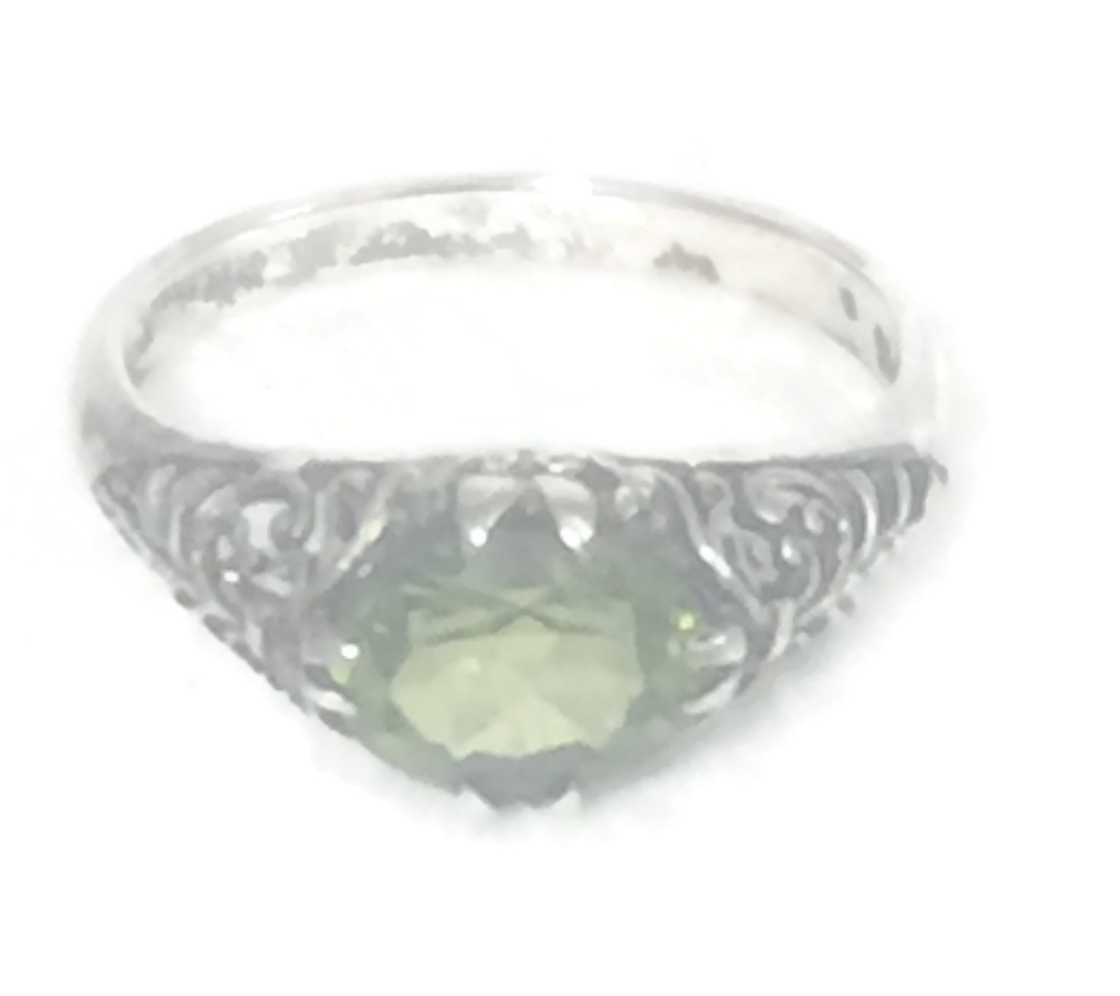 Vintage Green Solitaire Filigree Floral Sterling Silver Boho Ring Size 6.50