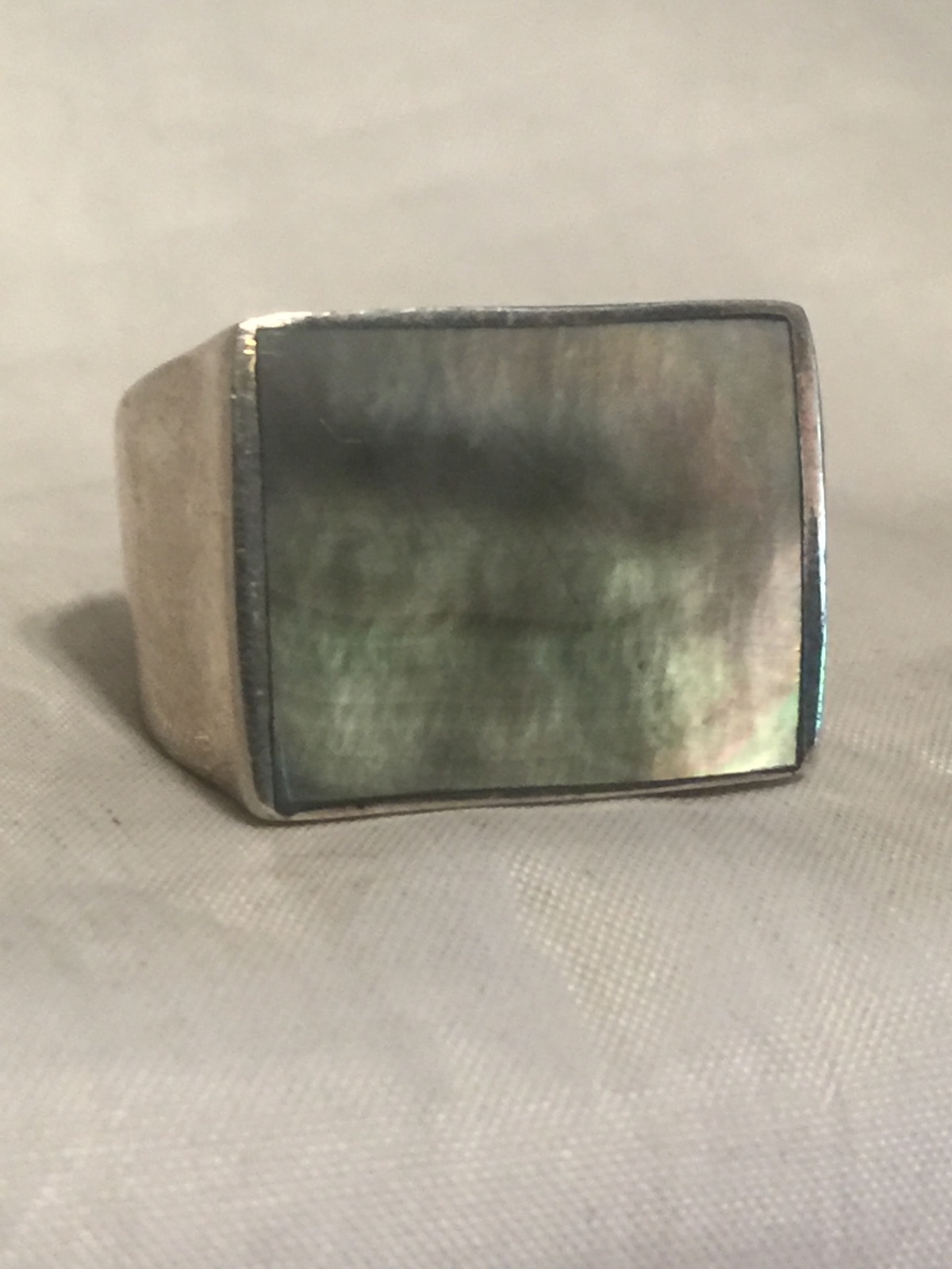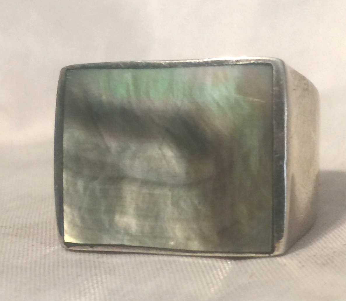 как выглядит Vintage Sterling Silver Abalone Ring Size 7 10.9g Rectangle Bulky фото