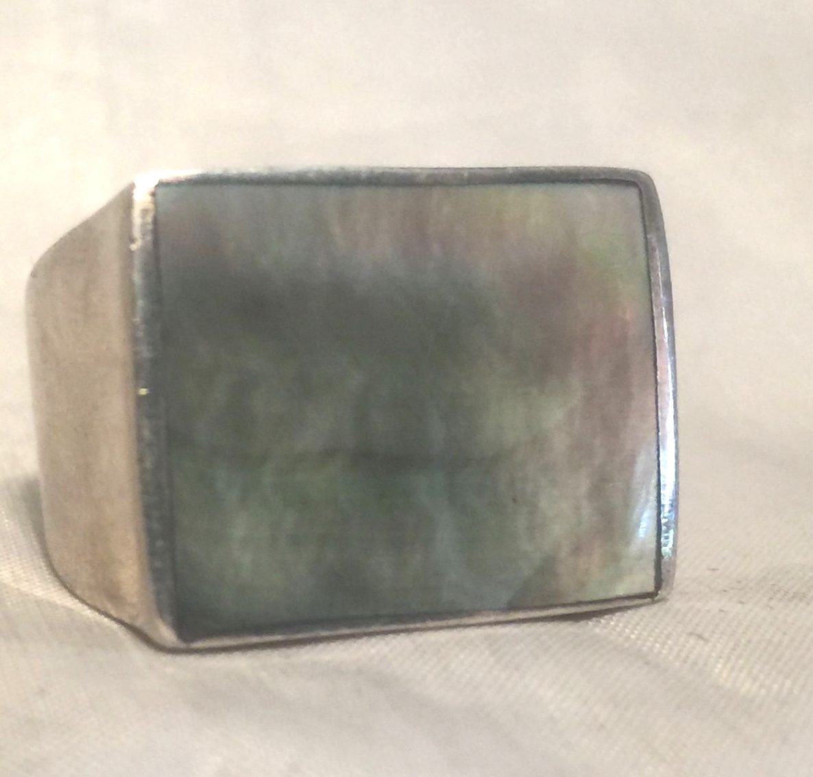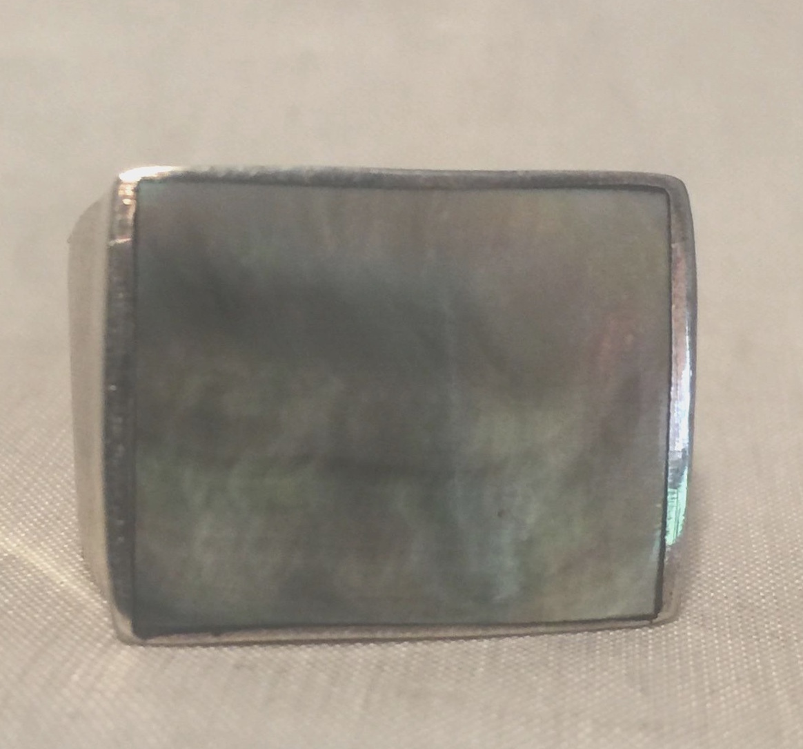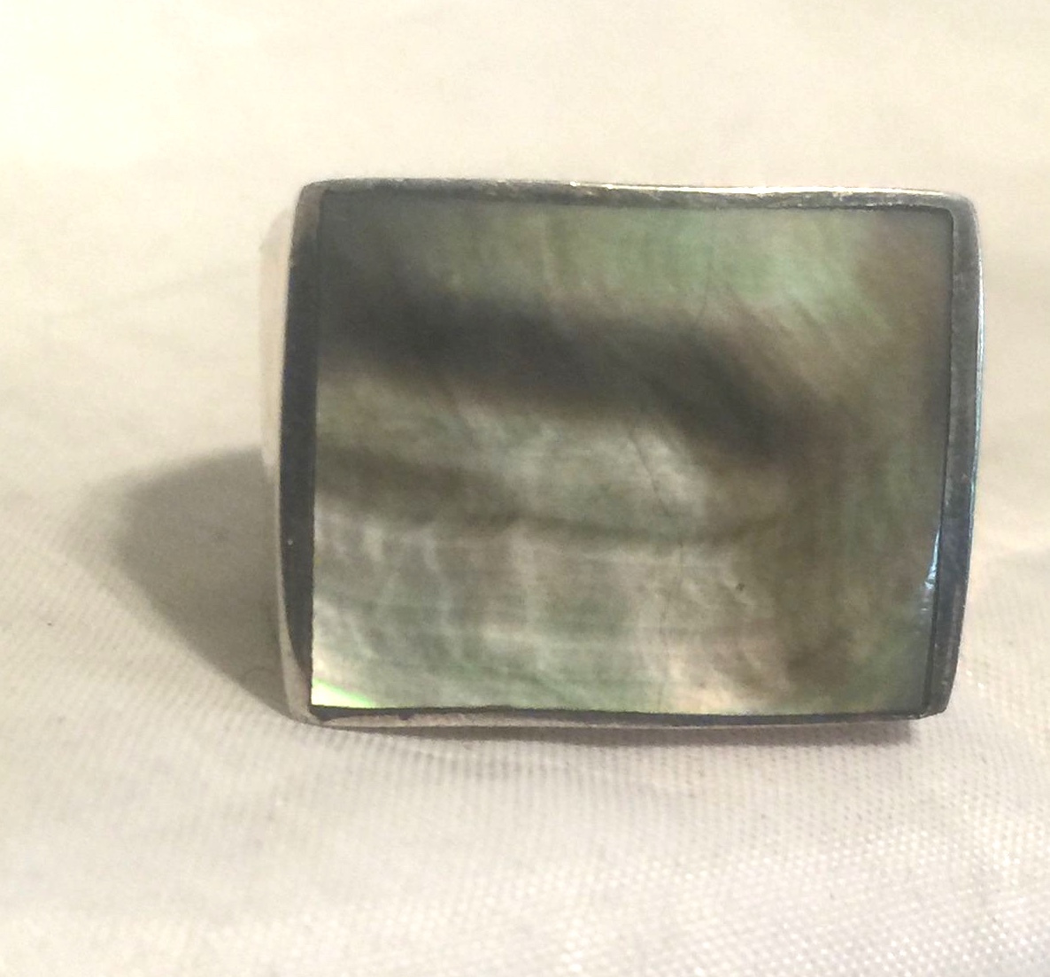 Vintage Sterling Silver Abalone Ring Size 7 10.9g Rectangle Bulky