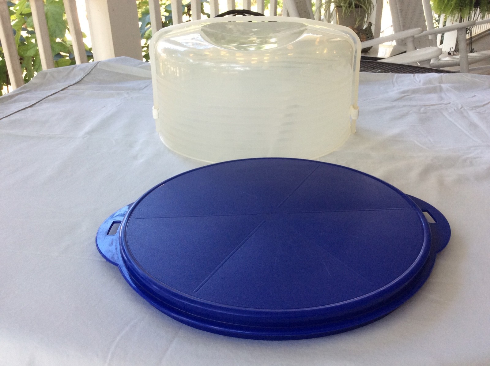 • Tupperware Round Cake Taker Blue Clear Locking Lid 12 Inch 3062B