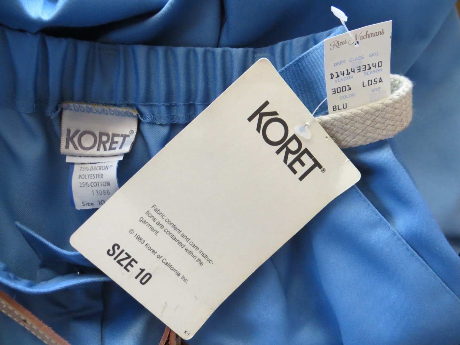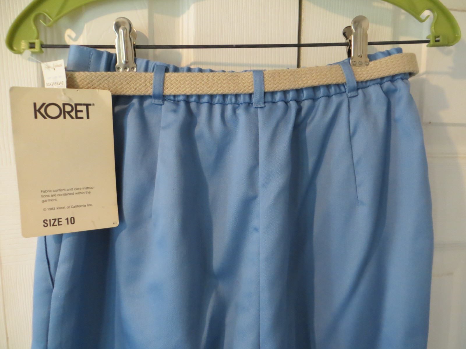 NWT 80's Vintage Koret Light Blue Poly Cotton Belted High Waist Mom Pants 10