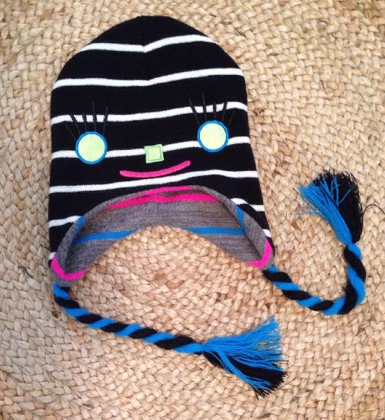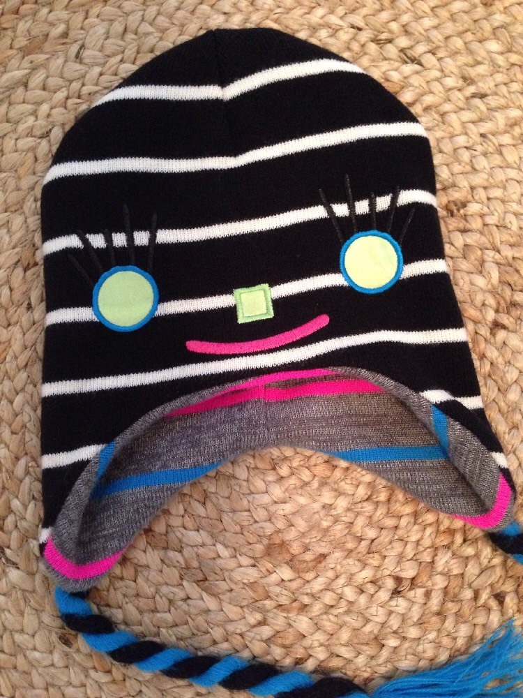 как выглядит Kids Warm Knit Hat Reversible FACES Ear Flap Ties Winter Girls Boys One Size фото