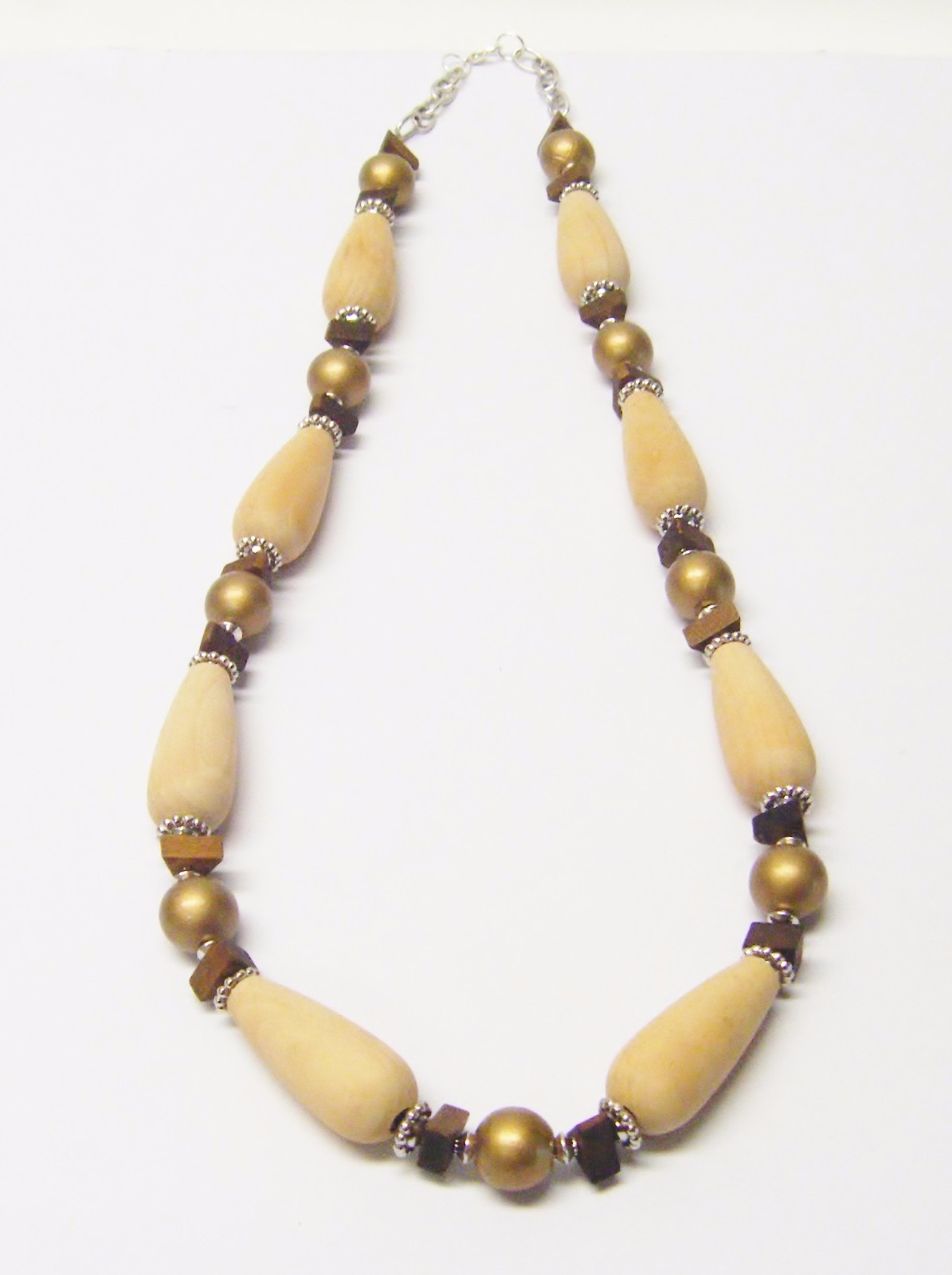 как выглядит Long Natural Teardrop Wood Bead Necklace Earrings Set фото