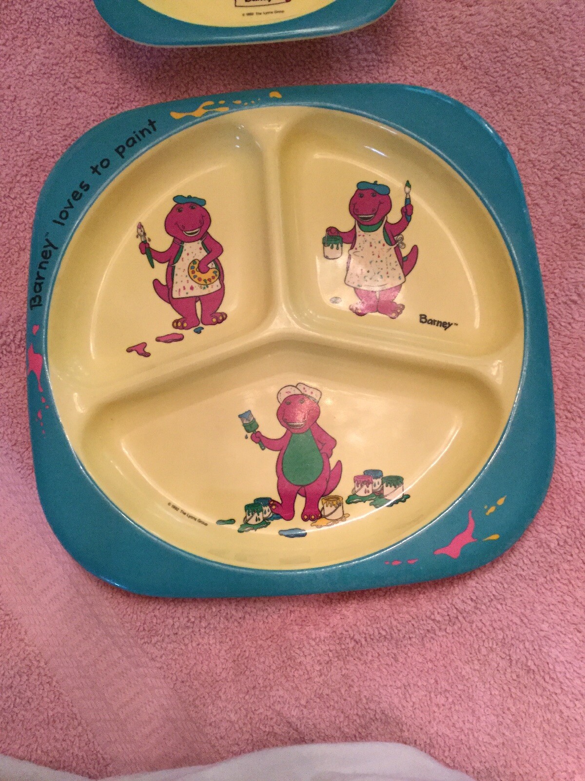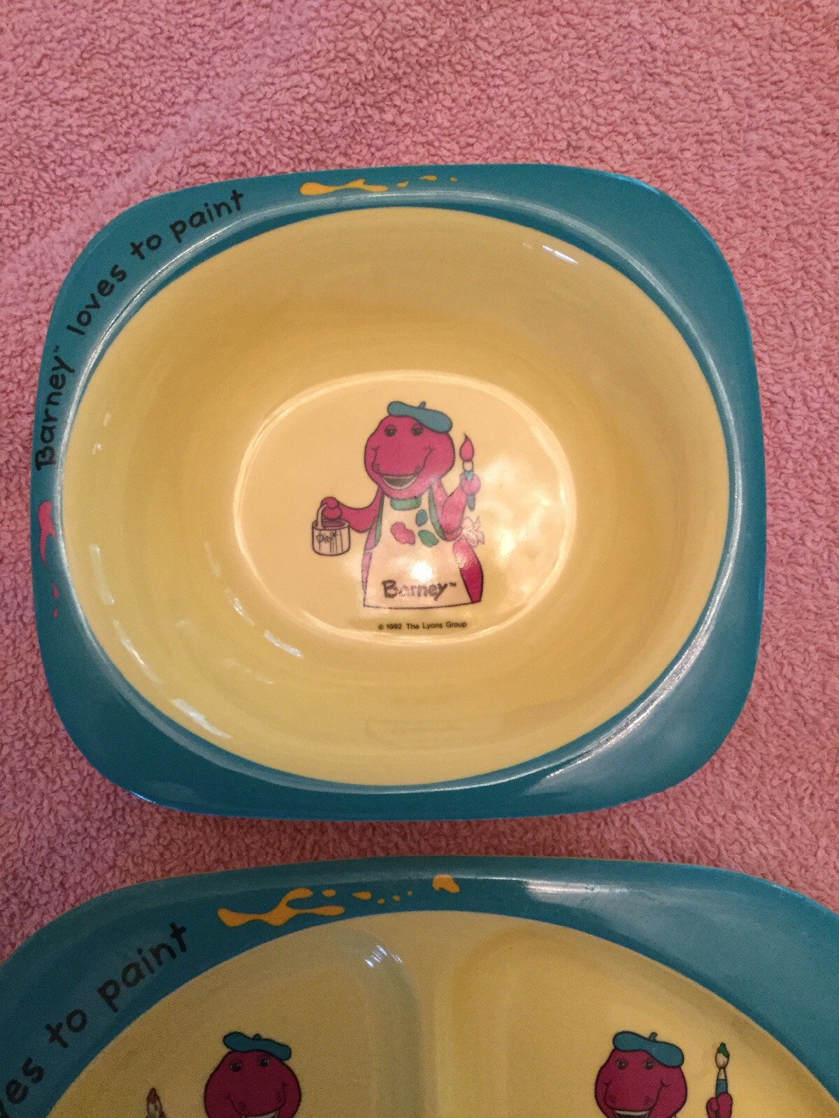 как выглядит 1992 Barney Loves To Paint Melamine Sectional Plate/Bowl фото