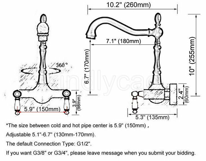 Bathroom Faucet 360 Swivel Spout Wall Mounted Dual Handle Kitchen Sink Mixer Tap