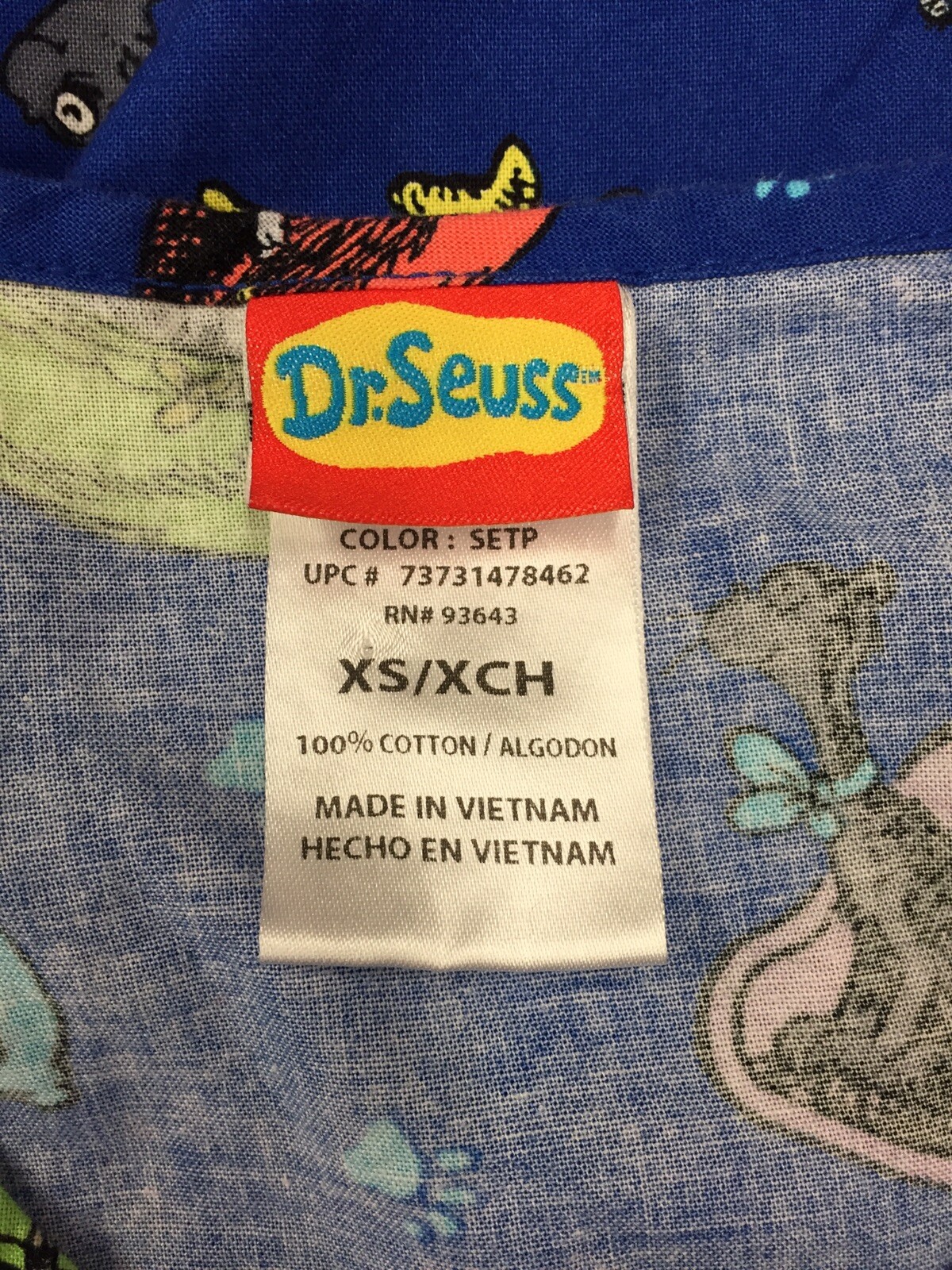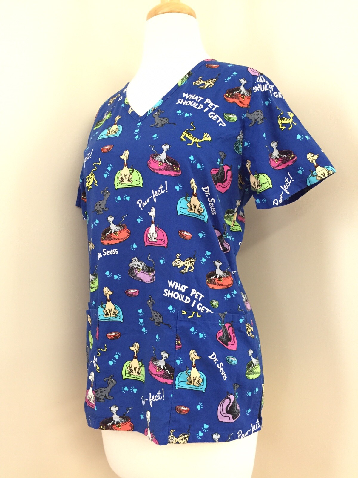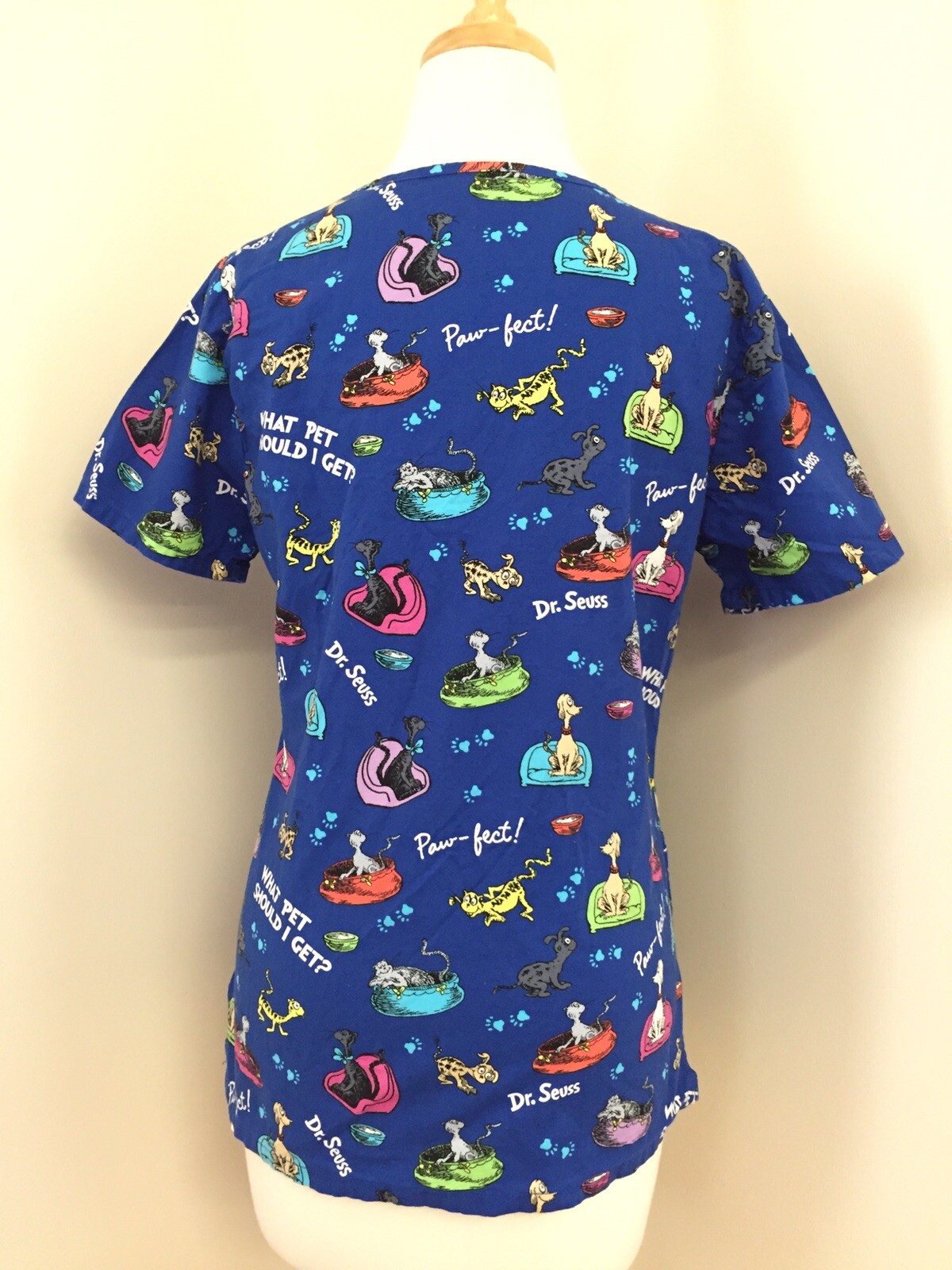 Dr. Seuss What Pet Should I Get XS Scrub Top Royal Blue Paw-fect 100 Cotton