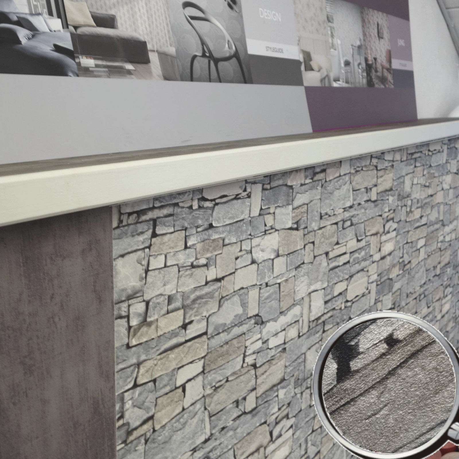 как выглядит 3D Multiple Shades of Gray Stacked Stone Paste the Wall Wallpaper 859102 фото