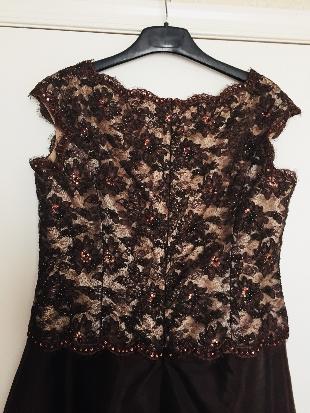 как выглядит Mon Cheri Montage Brown/Gold Lace Seguen Mother of the Bride/Groom Sz16-18 699. фото