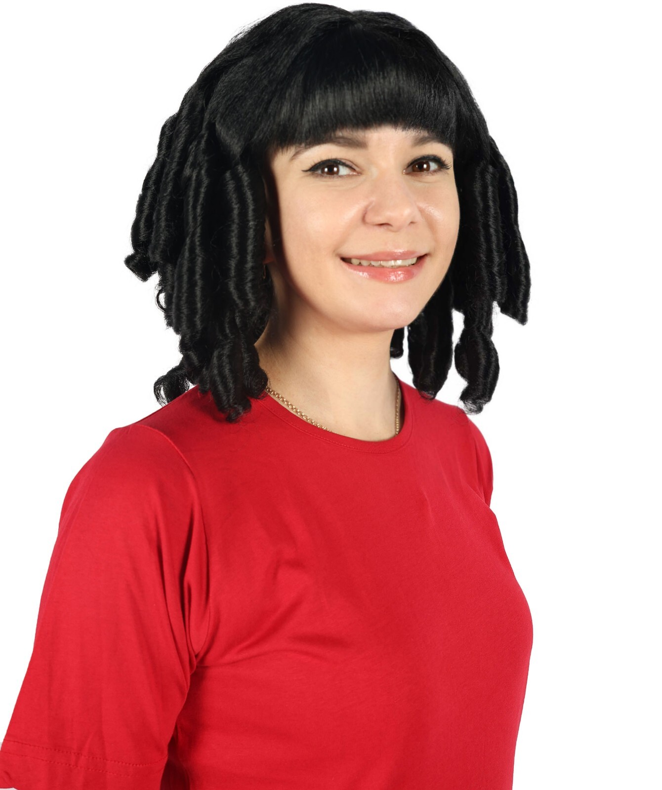 как выглядит Womens Colonial Historical Black Curly Wig HW-3019 фото
