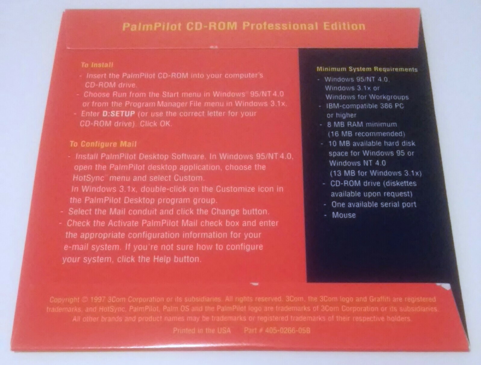 RARE VINTAGE - PALM PILOT PROFESSIONAL EDITION 1997 HANDBOOK MANUAL CD ROM