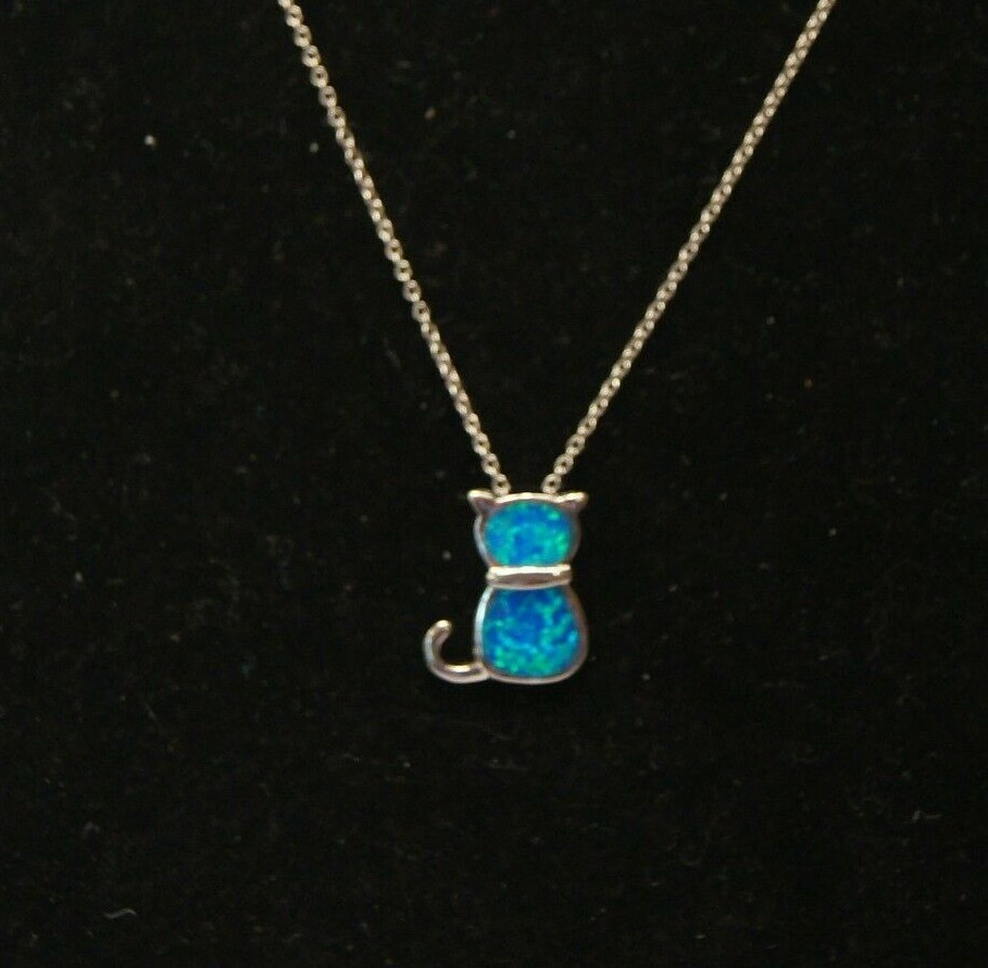 как выглядит NEW Girls Fashion Jewelry - Mini Cat Aqua Blue Pendant with Silver Chain фото