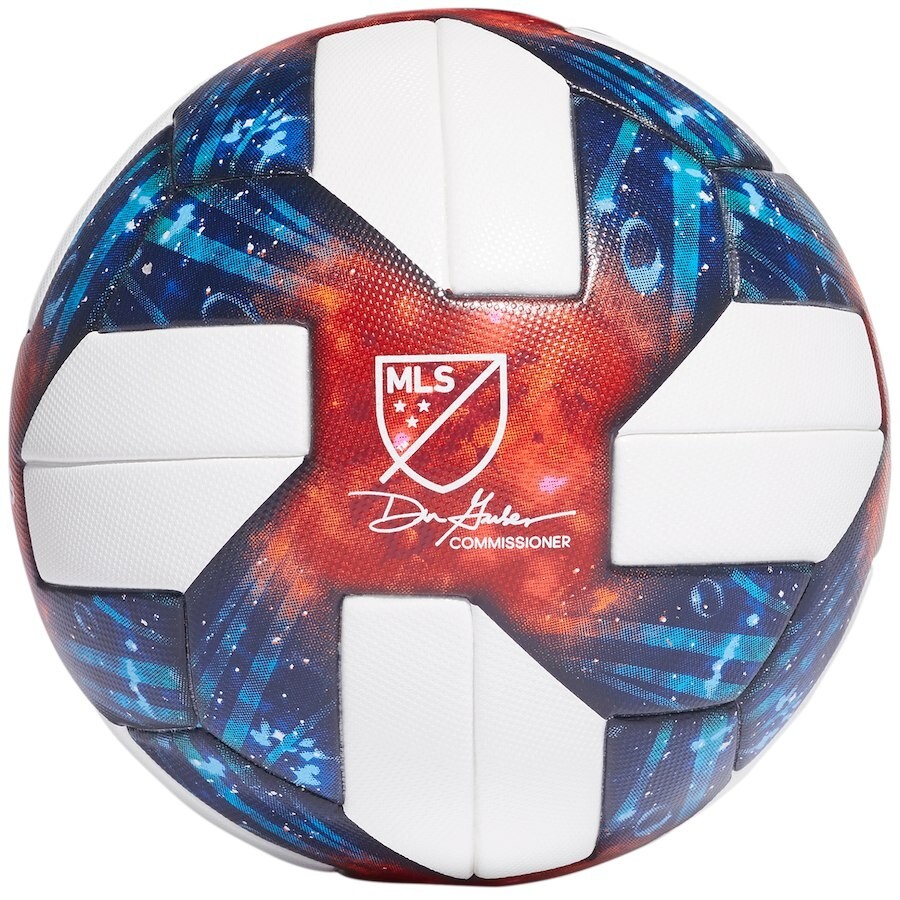 как выглядит Adidas 2019 MLS OMB Nativo Questra soccer ball size 5 Fifa Approved фото