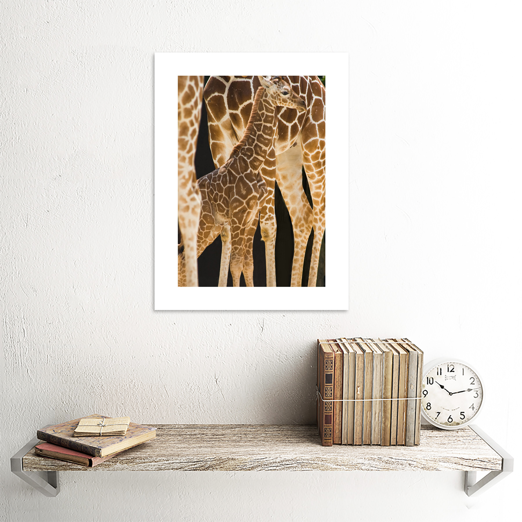 • Baby Giraffe Animals Family Art Framed Wall Art Print