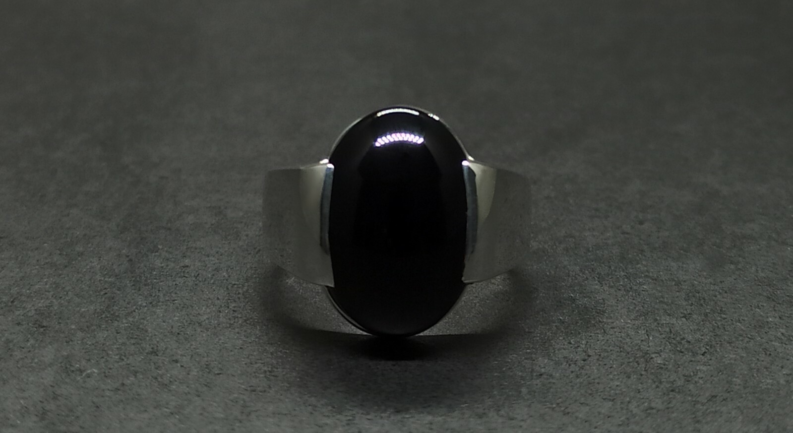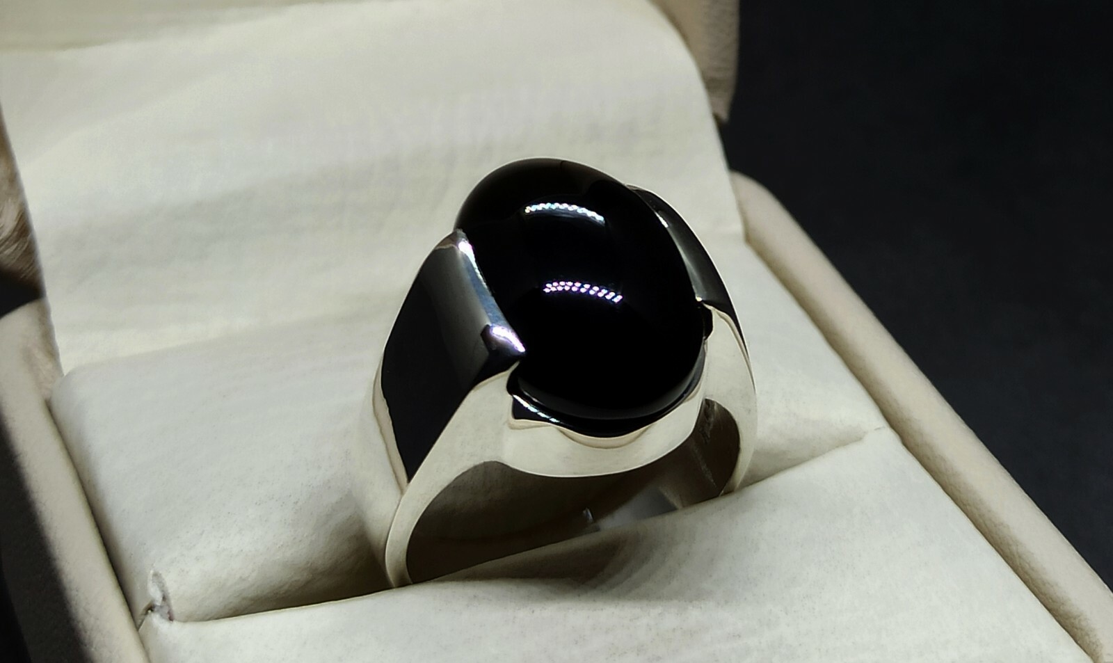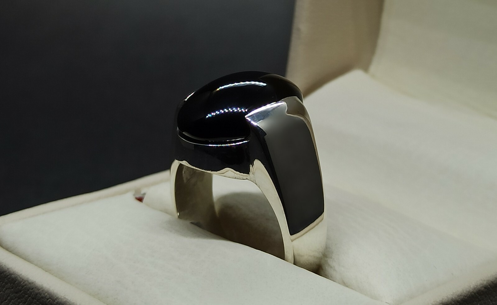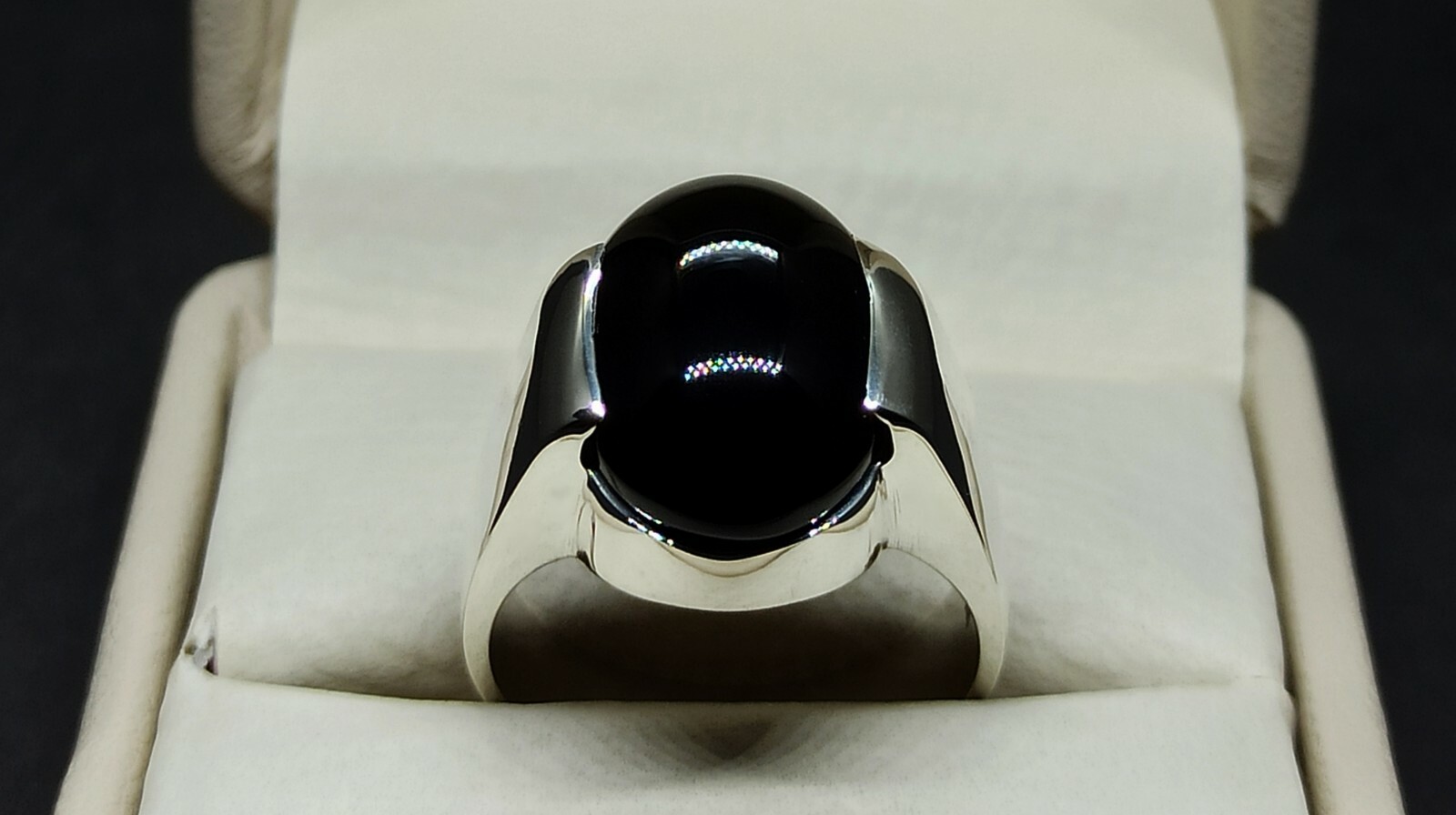 как выглядит Natural Black Yemeni Aqeeq Ring Sterling Silver 925 Handmade Black Agate Ring фото