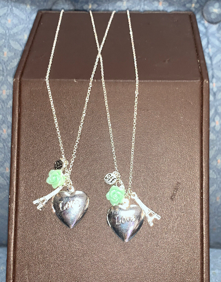BFFS LOVE LOCKETS PARIS SET NECKLACES 2 EIFFEL TOWER CHARMS SUPER CUTE