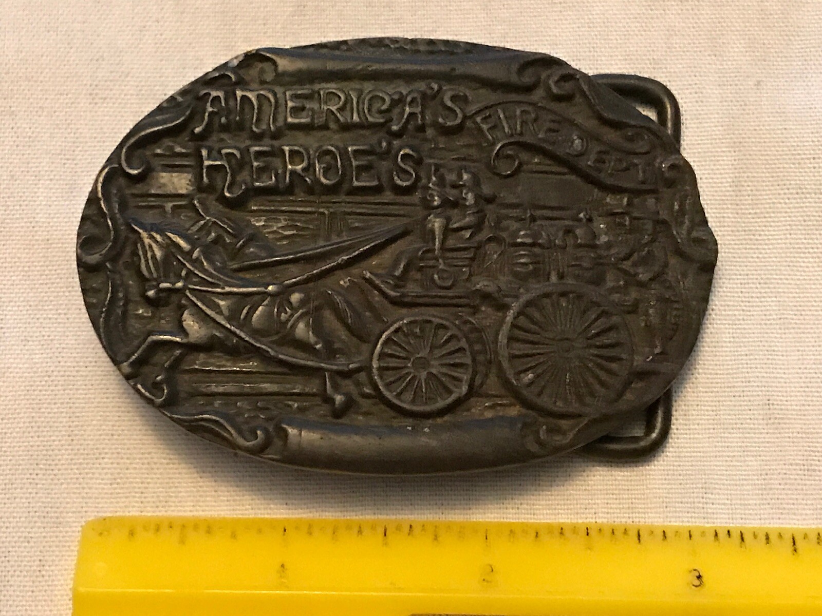 VINTAGE FIRE DEPARTMENT AMERICA HERO BELT BUCKLE. TIFFANY STUDIO