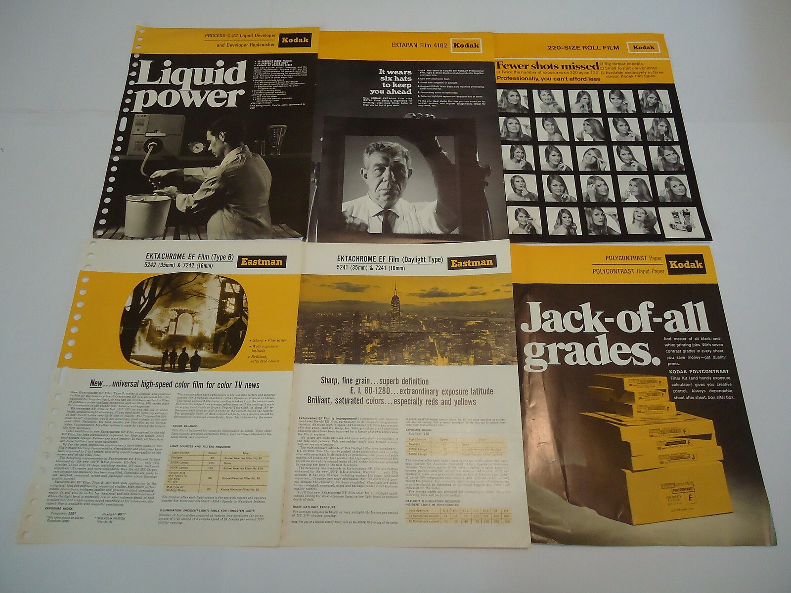 Kodak 1966 to 1970 lot 13 loose-leaf pages Films Papers Developing Professional