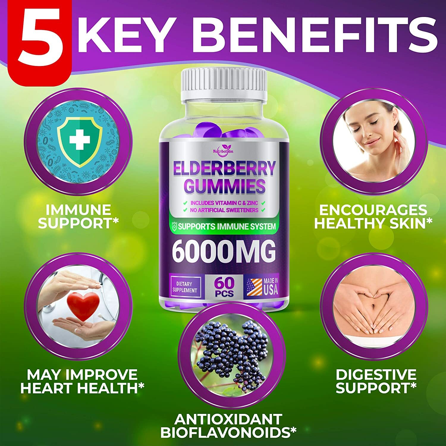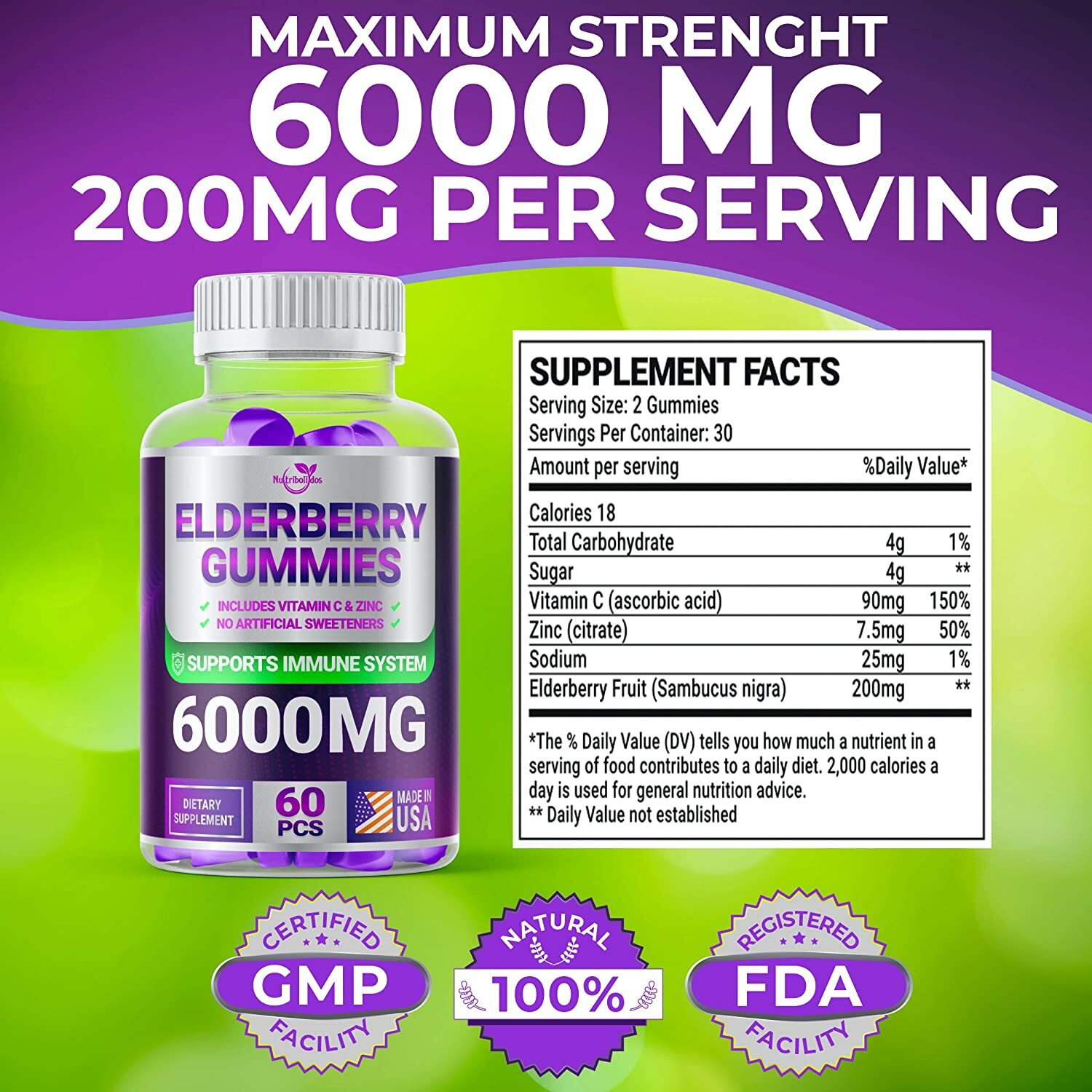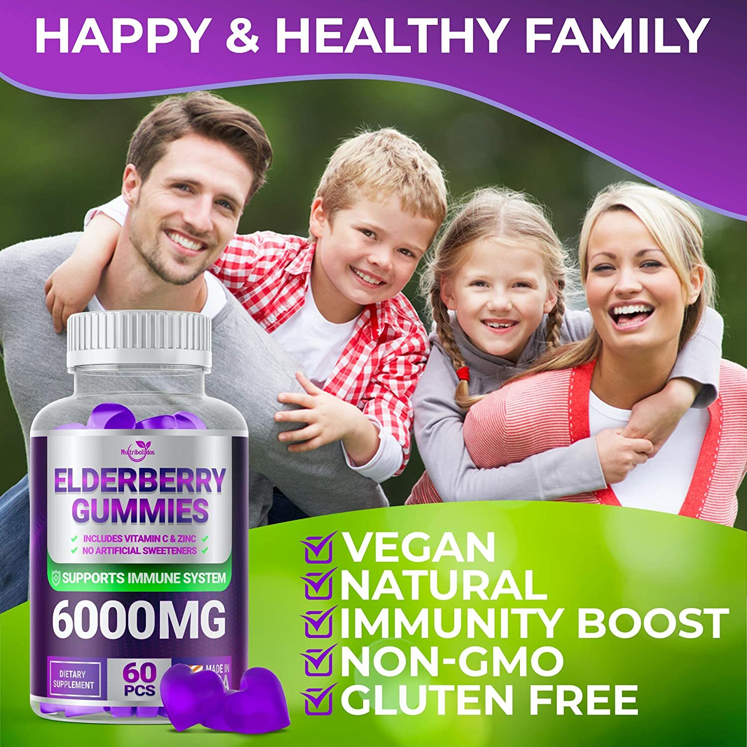 2 Pack 120 Gummies Elderberry Gummies for Adults Kids Toddlers with Vitamin