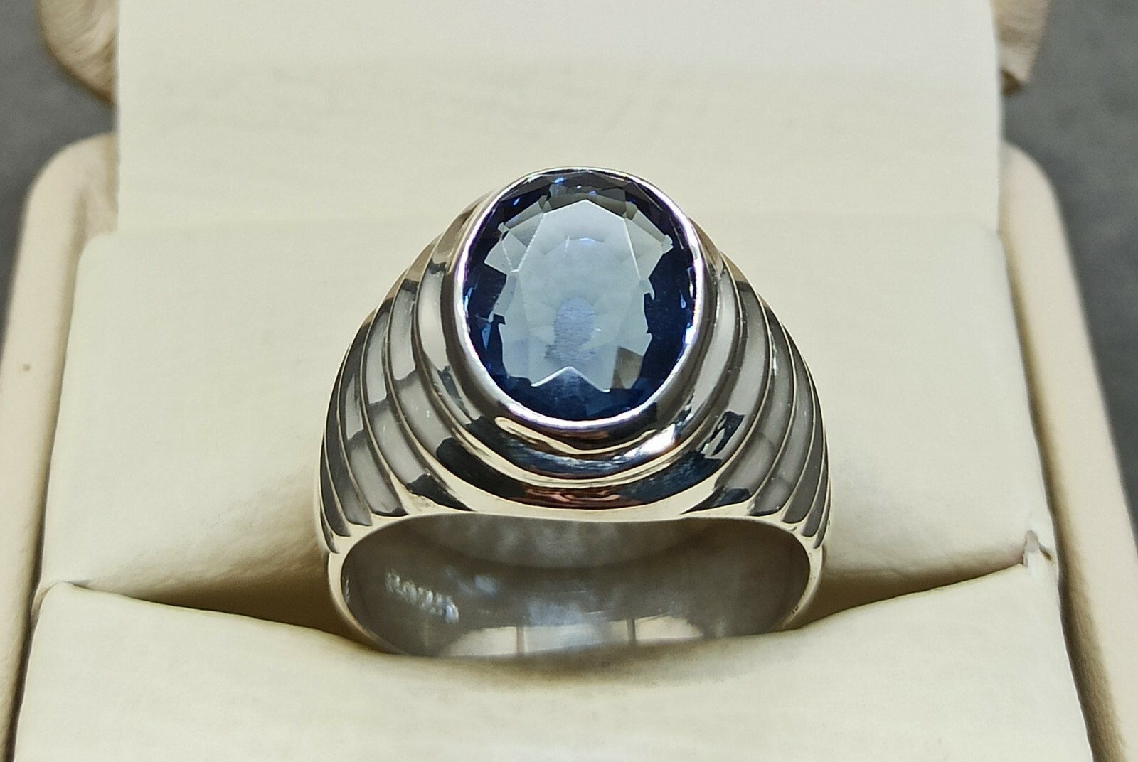 Oval Cut 6 Ct Deep Blue Topaz Sterling Silver 925 Handmade Blue Topaz Mens Ring