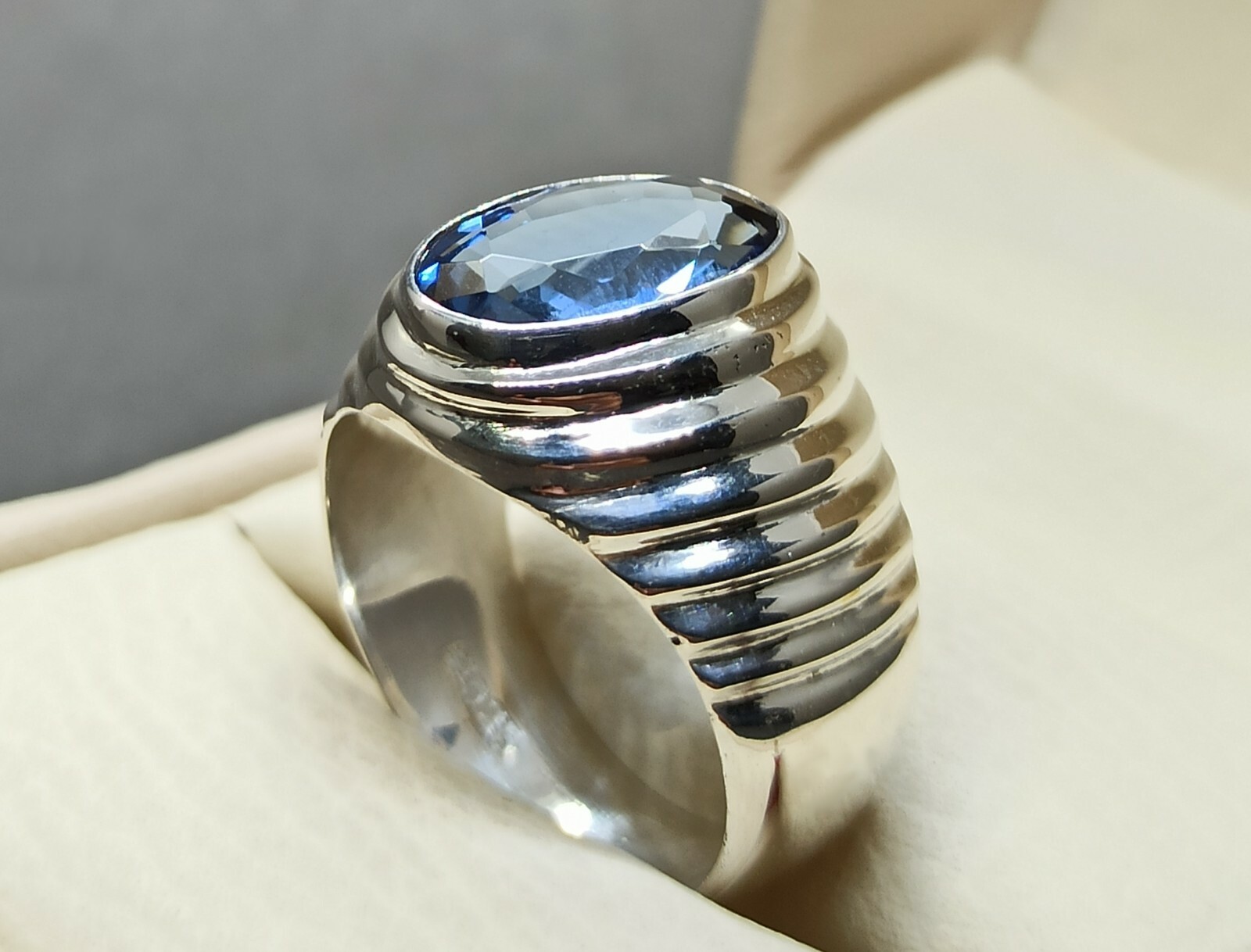 как выглядит Oval Cut 6 Ct Deep Blue Topaz Sterling Silver 925 Handmade Blue Topaz Mens Ring фото