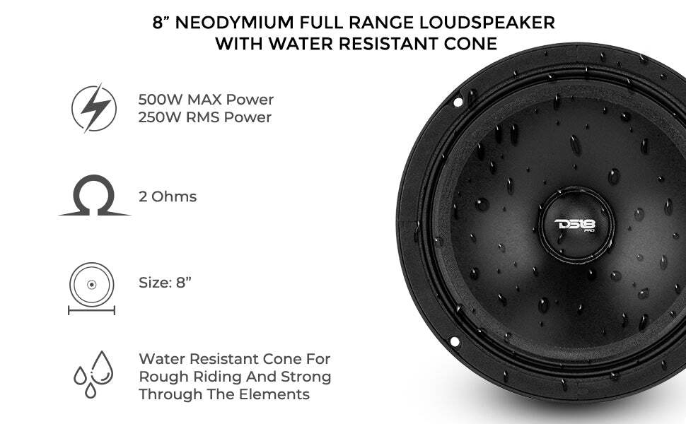 DS18 PRO-M8.2NEO 8 Neodymium 500W 2 Ohm Midrange Speaker Motorcycle Waterproof