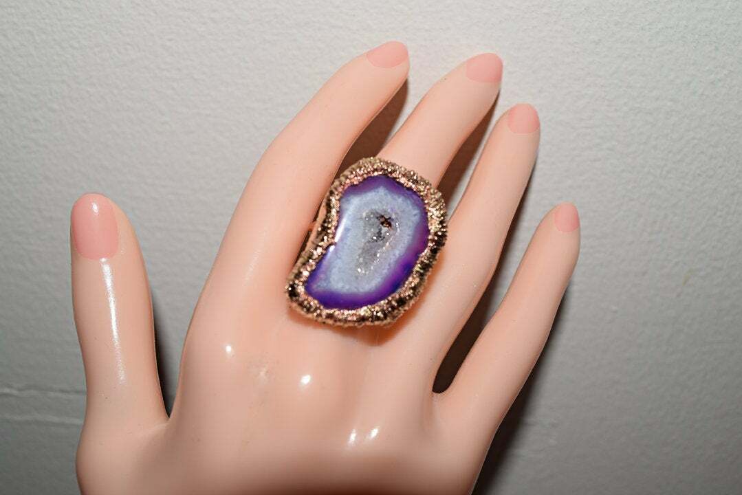 как выглядит Copper Electroformend Purple Agate Statement Ring Size 4.5 фото