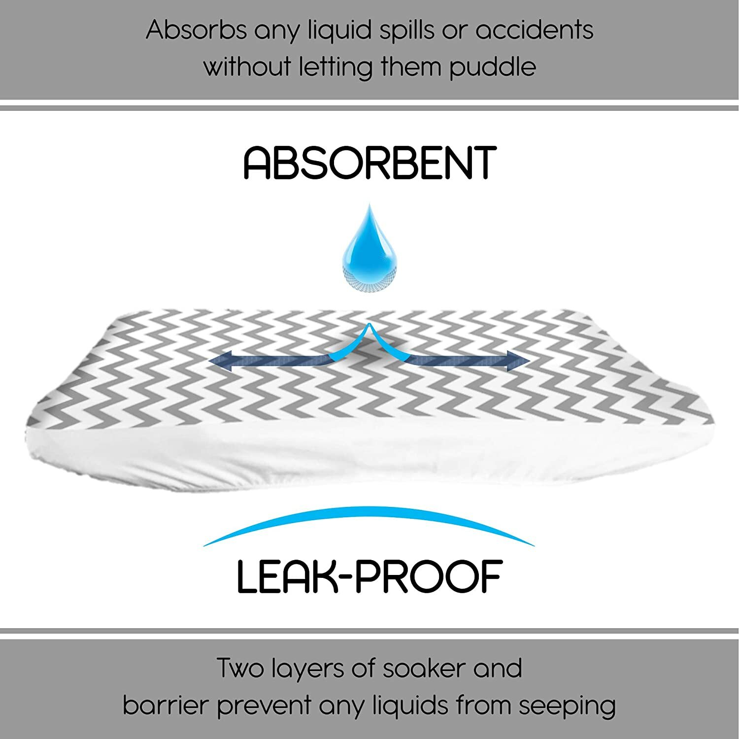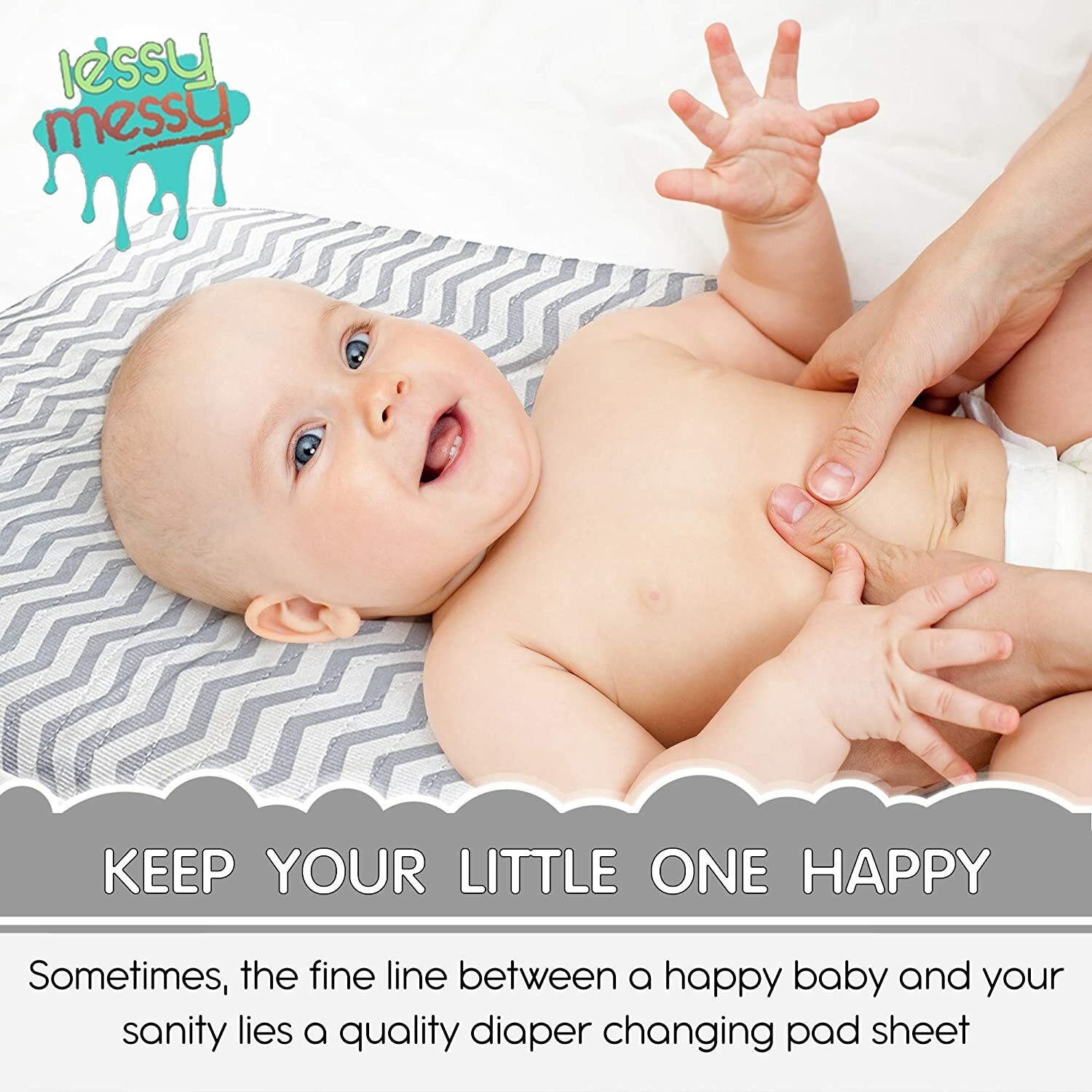 Lessy Messy Diaper Changing Pad Covers, Leakproof, Washer / Dryer Safe Snug Fit