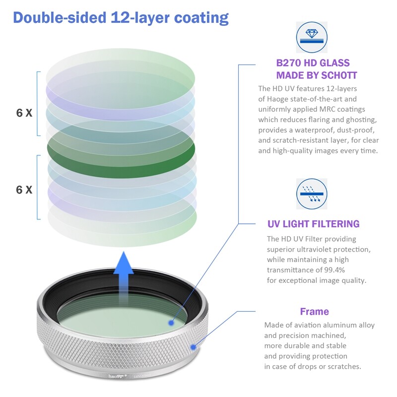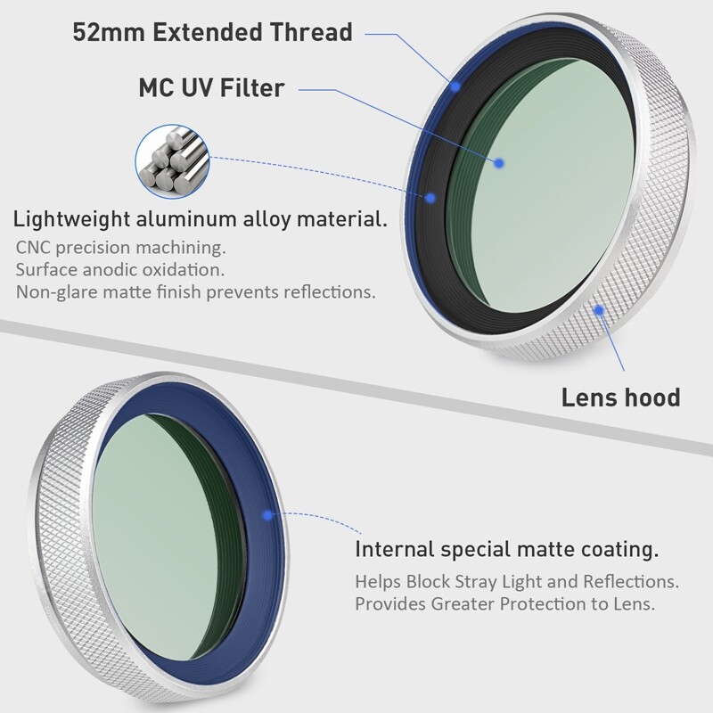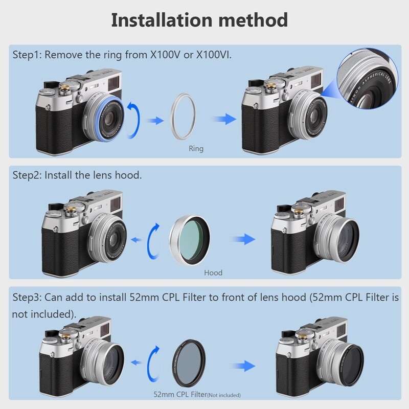 Metal Lens Hood built-in MC UV Filter Protection for Fujifilm Fuji X100V Silver