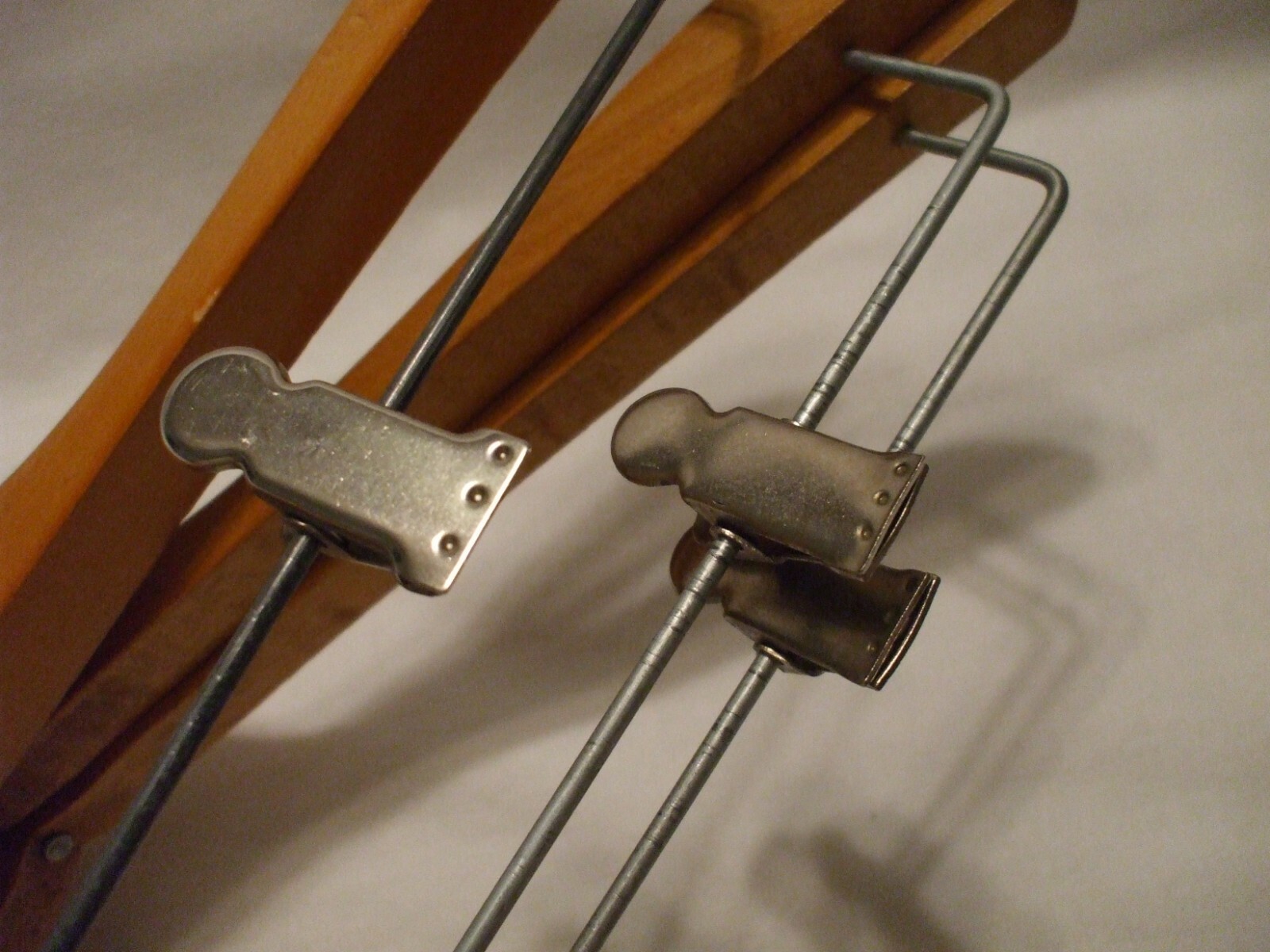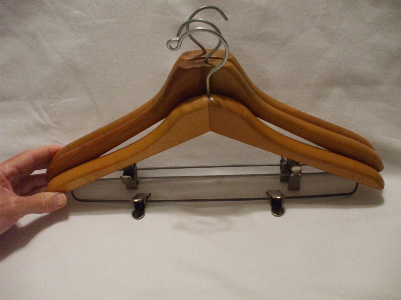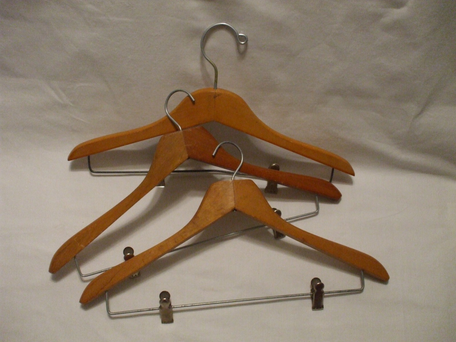 как выглядит Vintage 18" Wooded Suit Hangers with Metal Pant Clips Lot of 3 фото