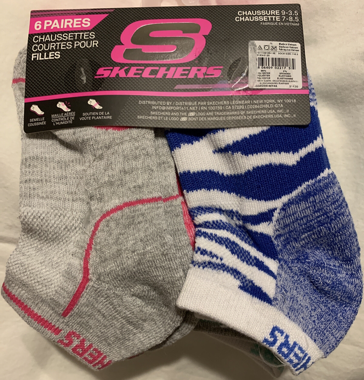 как выглядит Skechers Girls Low Cut Cushioned Socks 2 - 6 Pr Assorted Sock 7-8.5 Shoe 9-3.5 фото