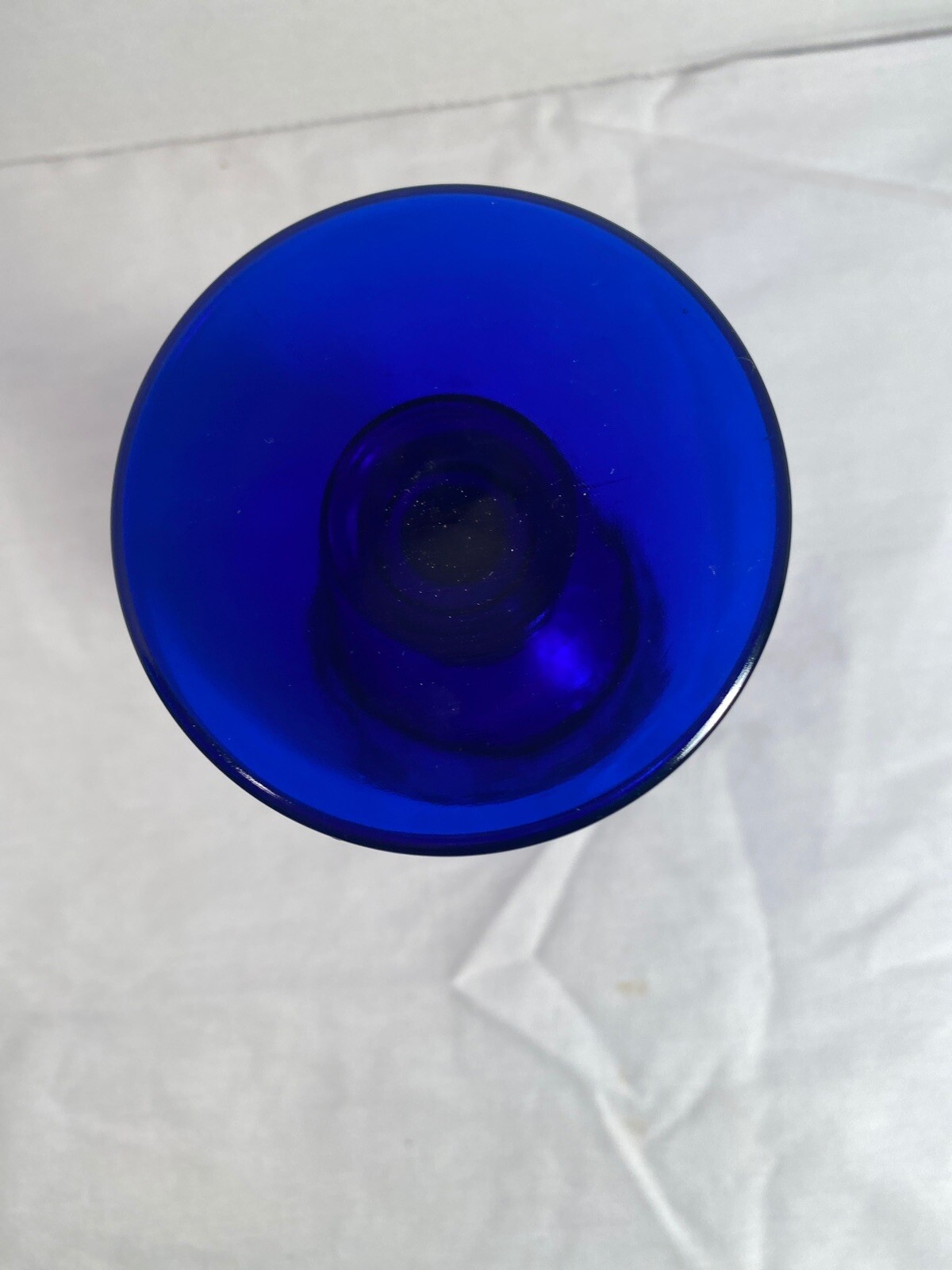 Vintage Cobalt Blue Glass Goblet With Cabin Animals On It Nice