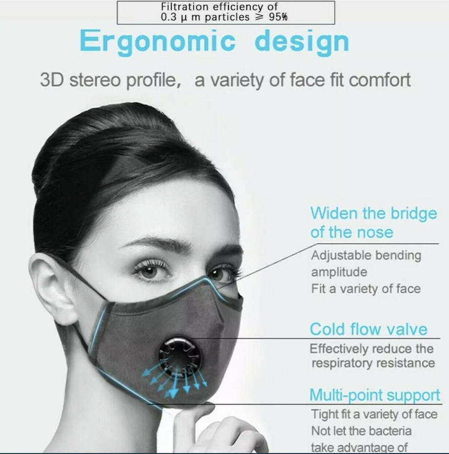 Cotton Face Mask With 2 Filters Washable Reusable Activated Carbon respirator
