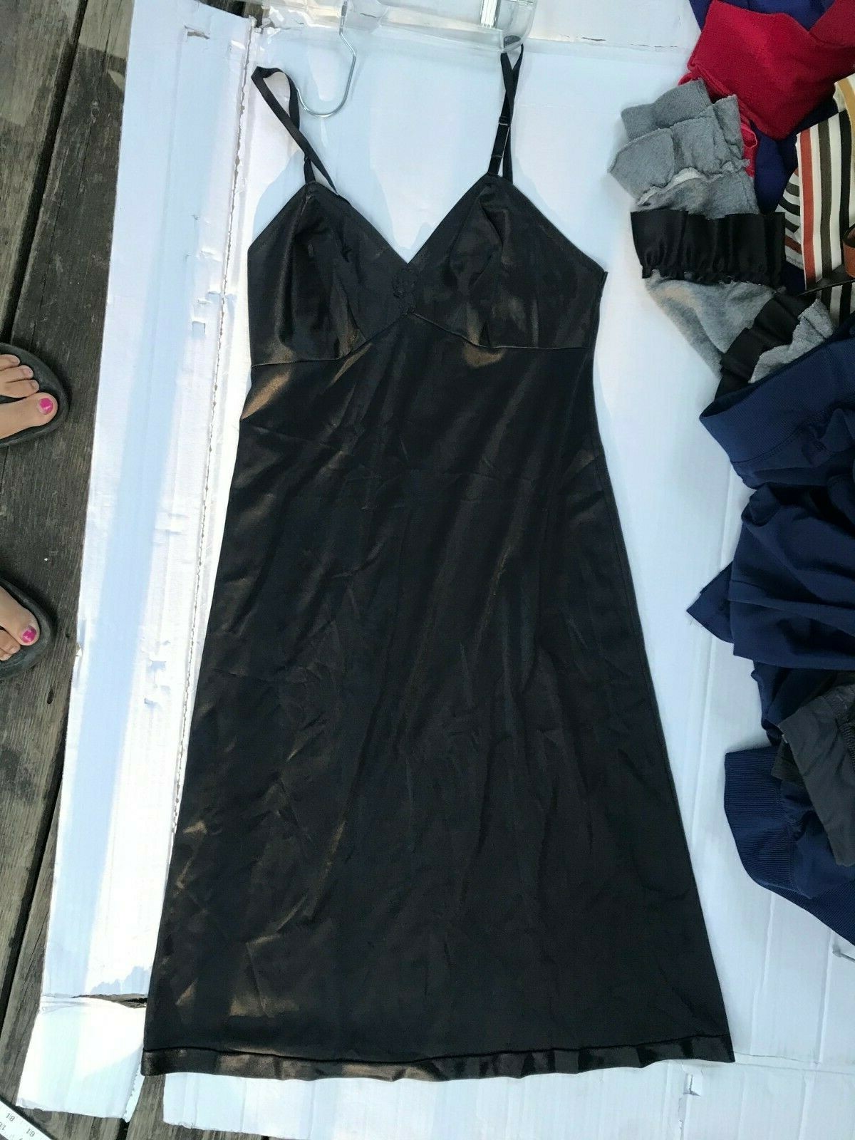 как выглядит Vintage Vanity Fair Black Nylon Nightgown Dres Size 34 L фото