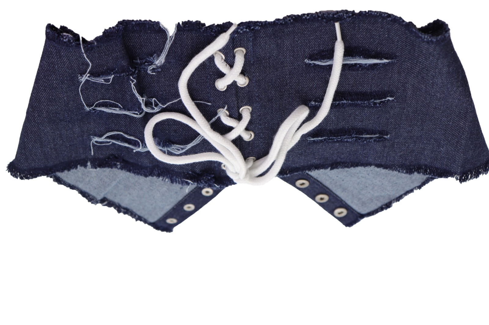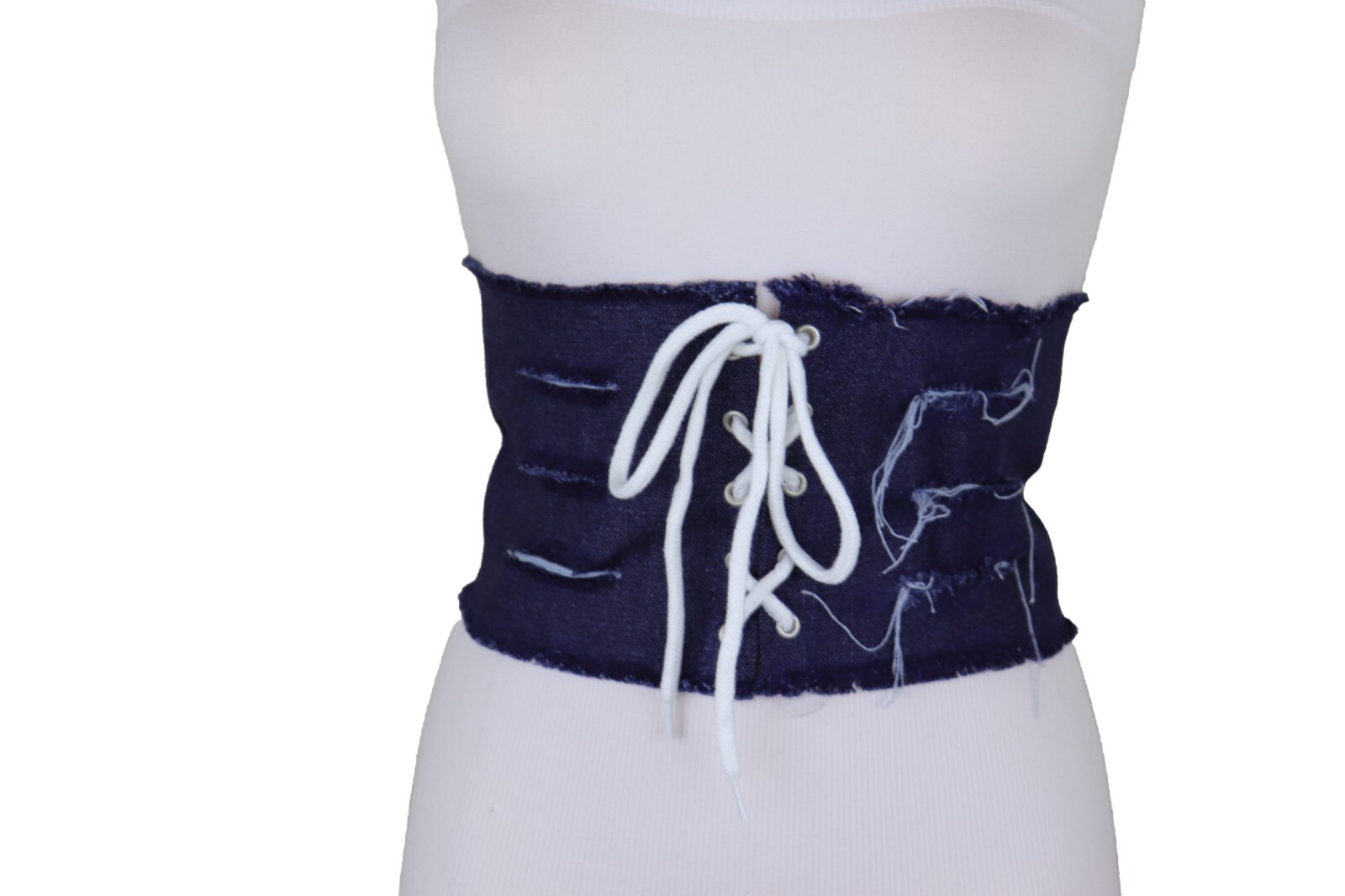 Women Wide Corset Dark Blue Denim Jeans Fabric Street Wear Fashion Style Belt S