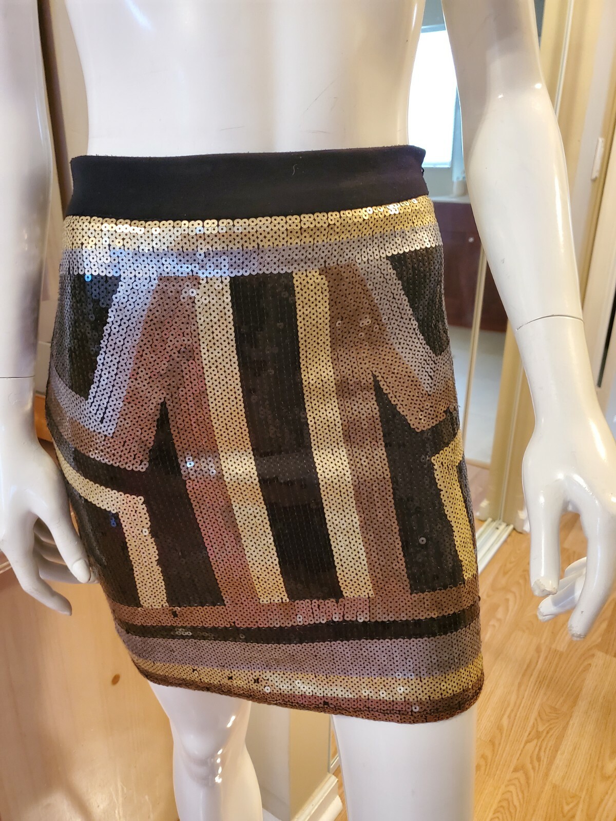 как выглядит Bebe sz xs side zip multi colored sequin skirt 17 inches 69 фото