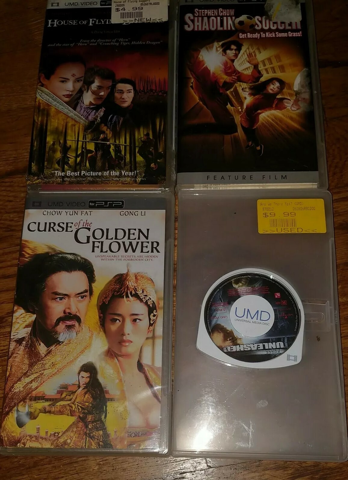 4 PSP UMD MOVIES: House of flying daggers ,Unleased,curse of golden flowers,...