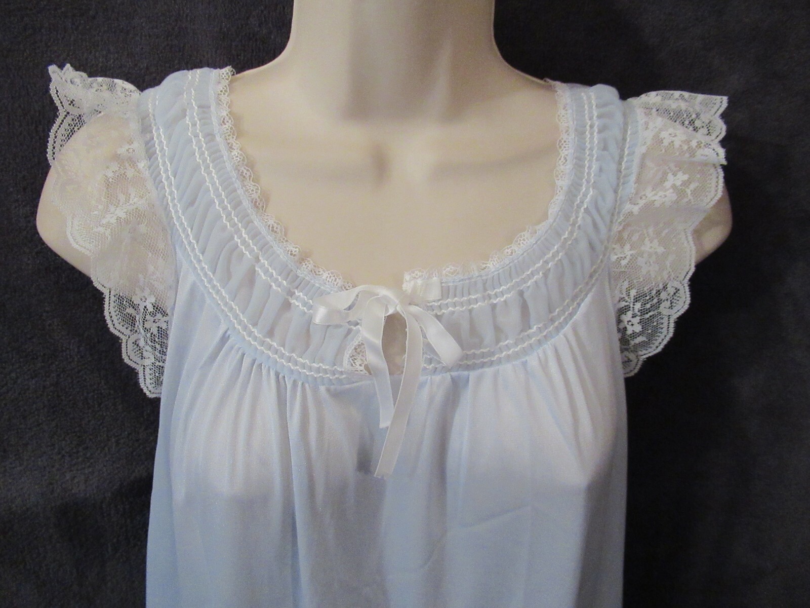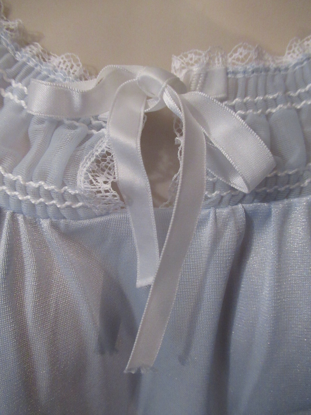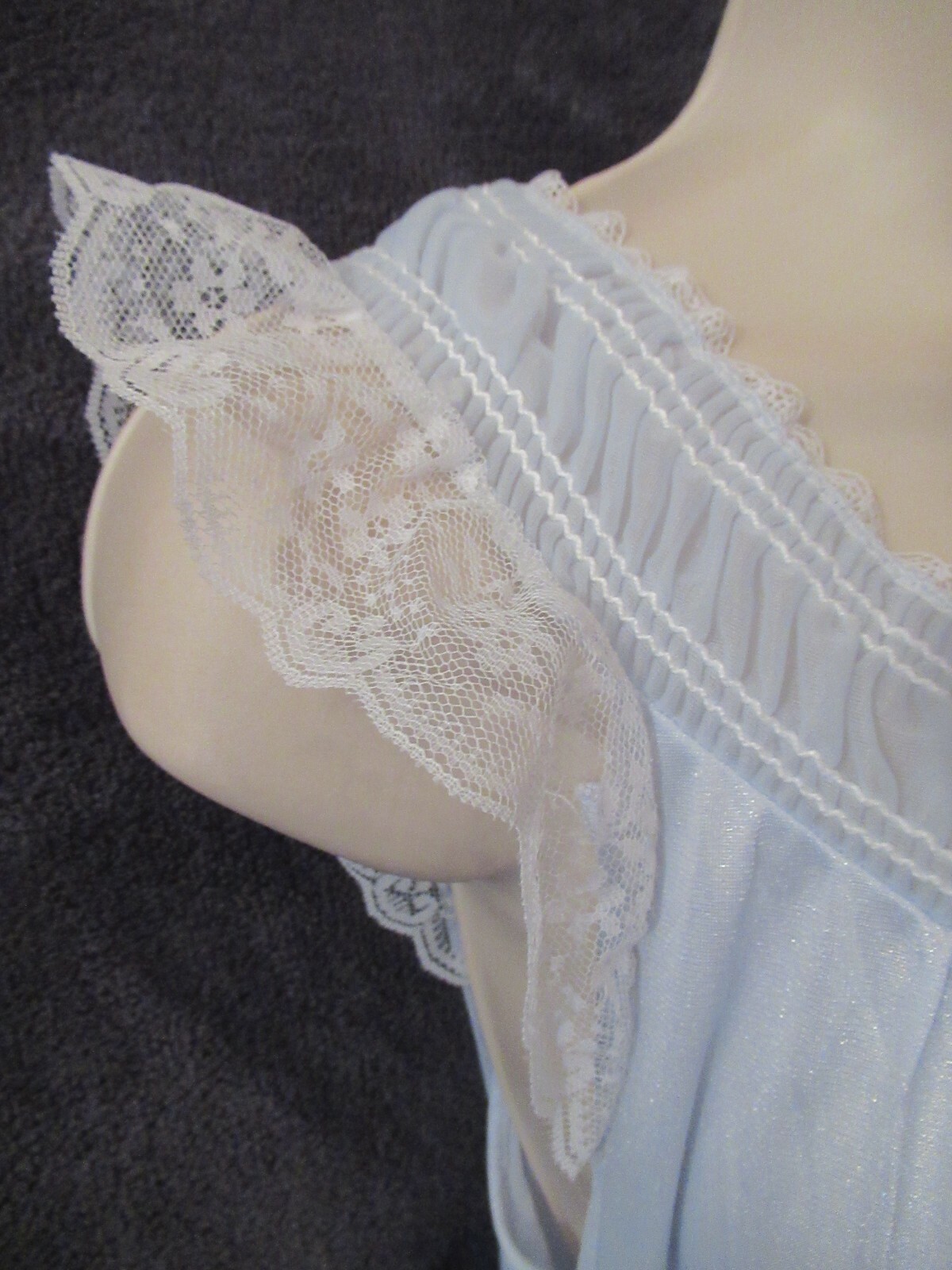 как выглядит Vintage Spotlight Light Blue Nylon Shimmer Ruched Lace Trim Sleeveless Nighty L фото