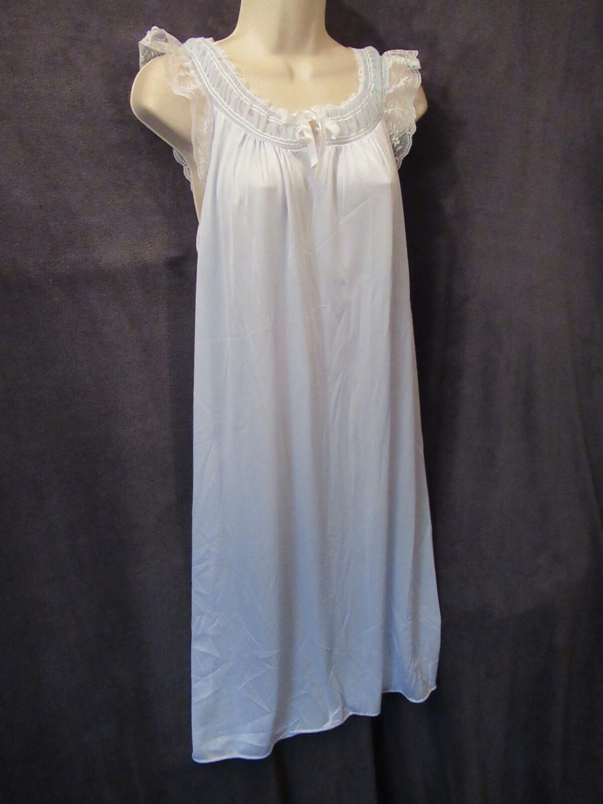 Vintage Spotlight Light Blue Nylon Shimmer Ruched Lace Trim Sleeveless Nighty L