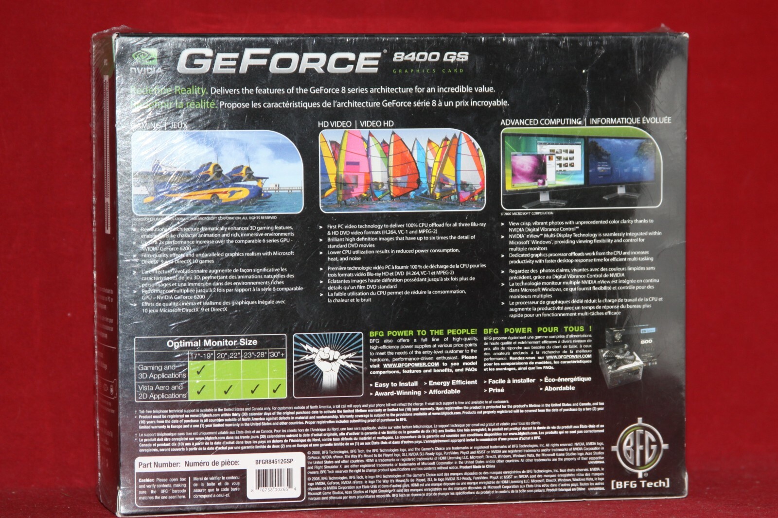 BFG Nvidia GeForce 8400 GS 512MB DDR2, PCI Graphics Card. BFGR84512GSP