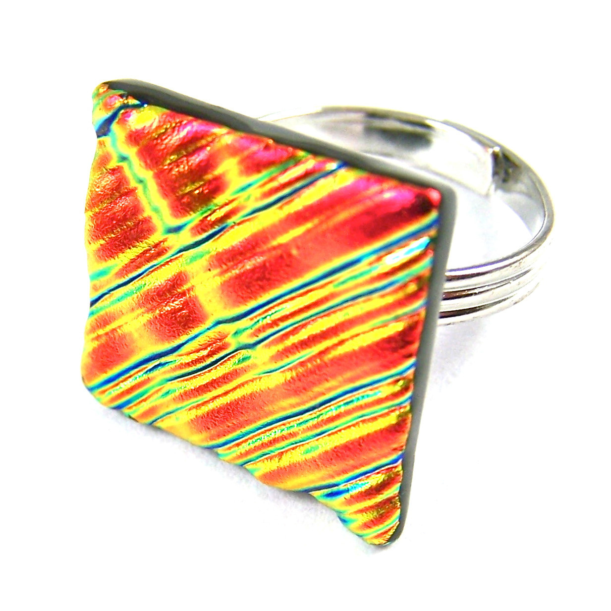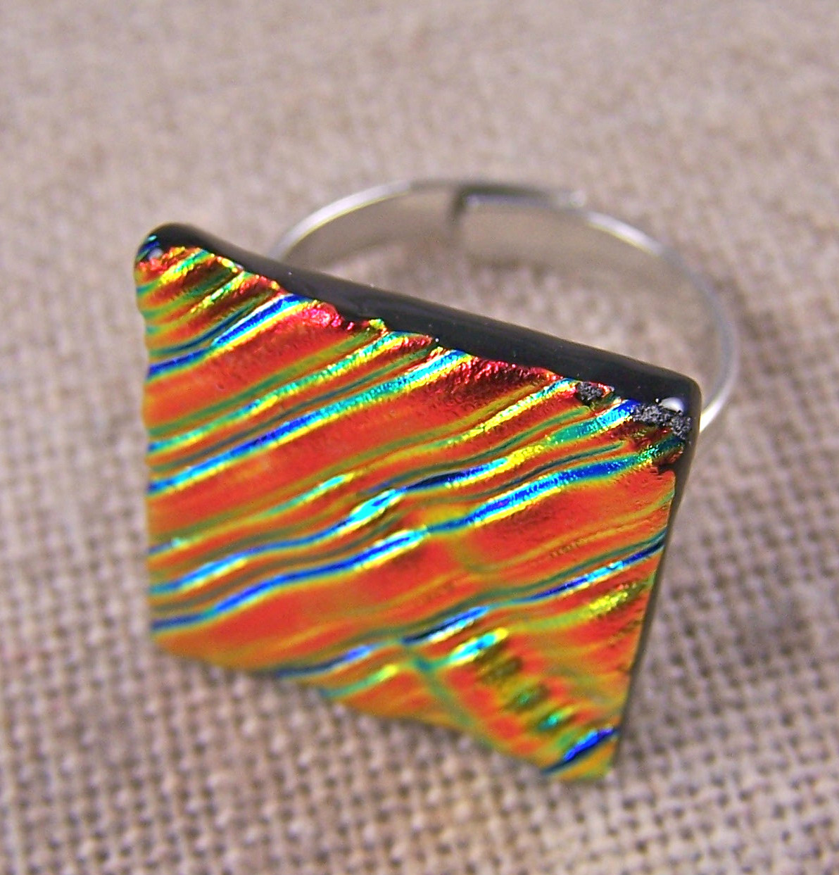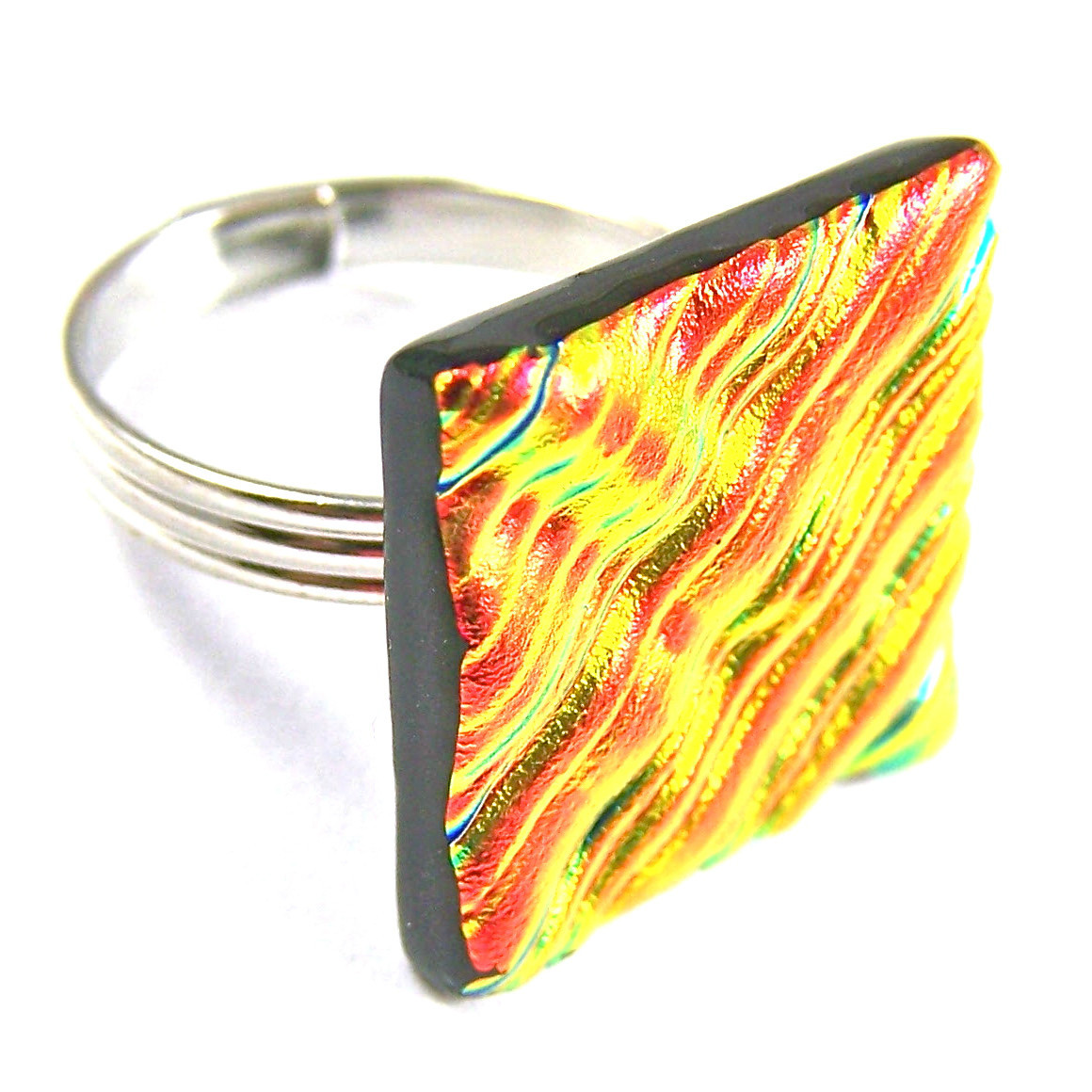 Dichroic Glass Ring Gold Copper Orange Ripple Wavy Texture Adjustable 3/4 20mm