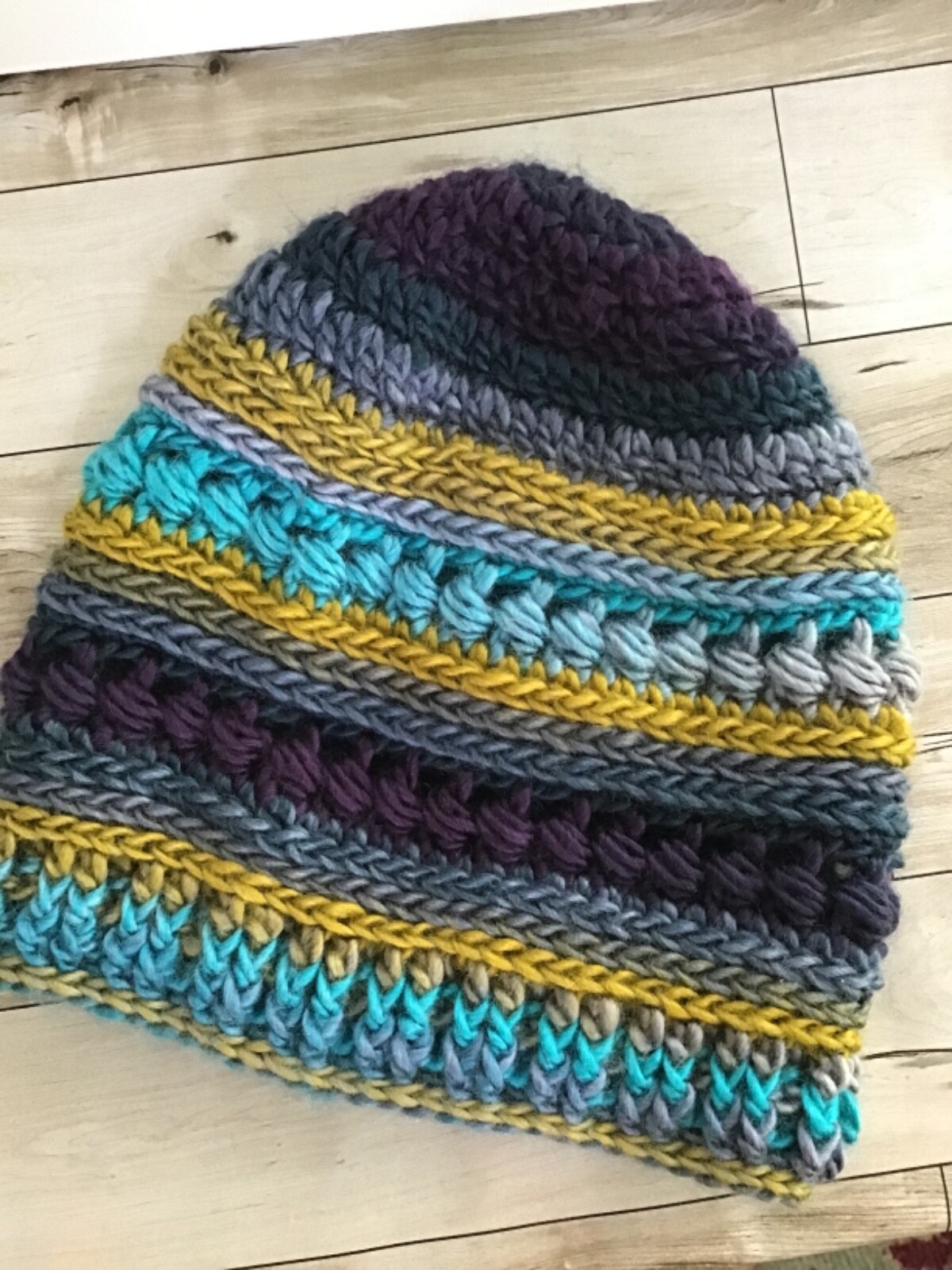 Handmade Blue Slouchy Beanie Hat Boho Crochet Knit Soft Multi Color Hipster