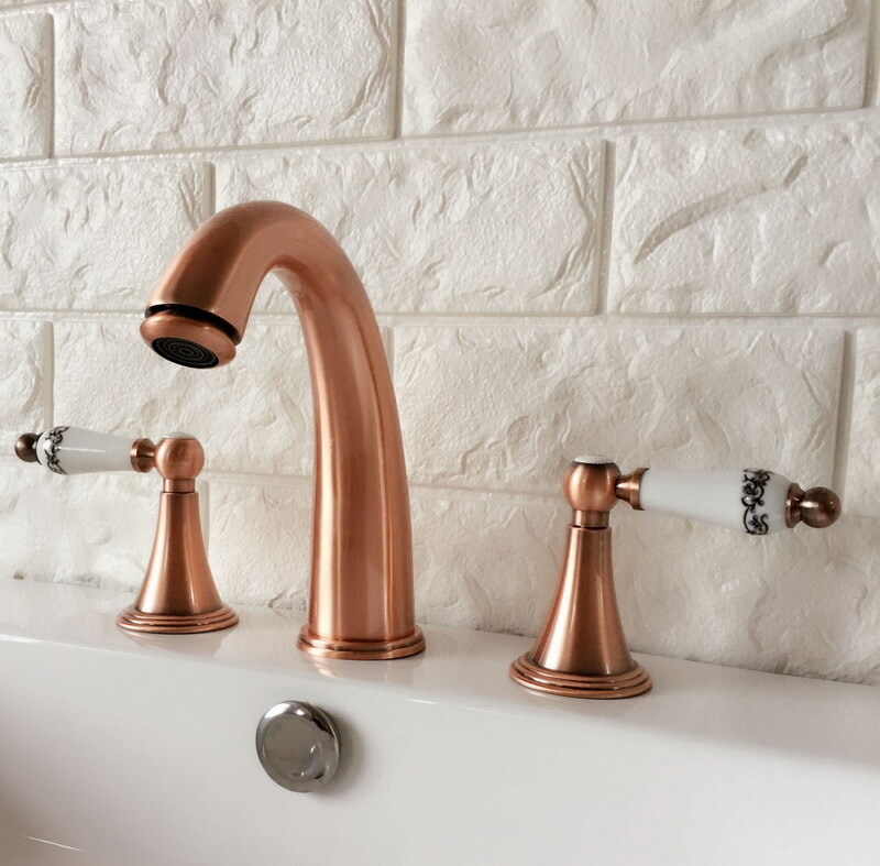 Antique Red Copper Widespread Bathroom Sink Basin Faucet 3 Hole Vanity Mixer Tap