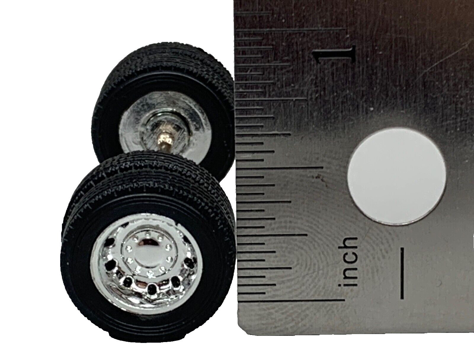 1/64 DCP PARTS CHROME 10 HOLE LOW PROFILE WHEEL TIRE PAIR W/ AXLE