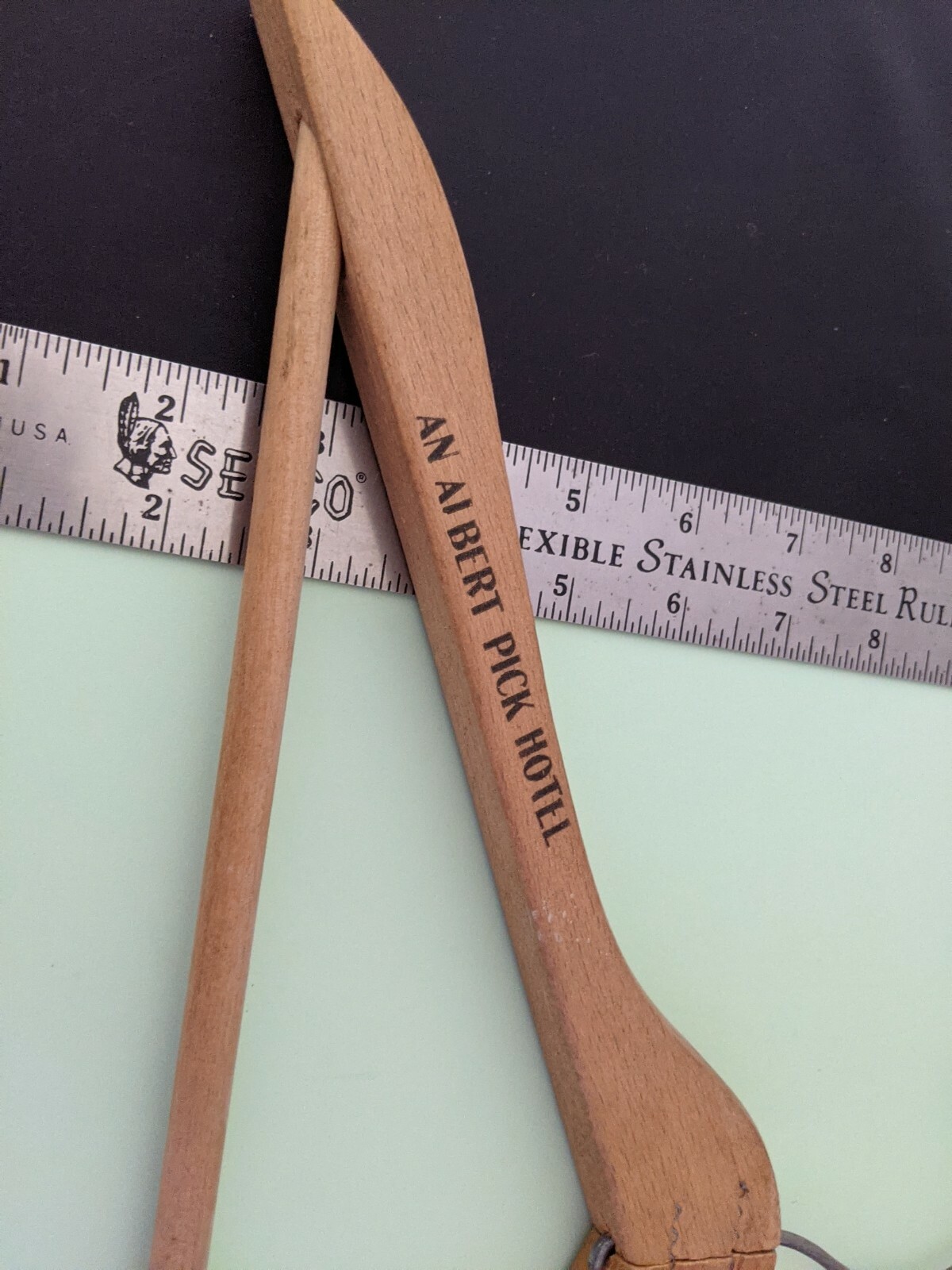 Vintage Advertising Wood Clothes Hanger- An Albert Pick Hotel